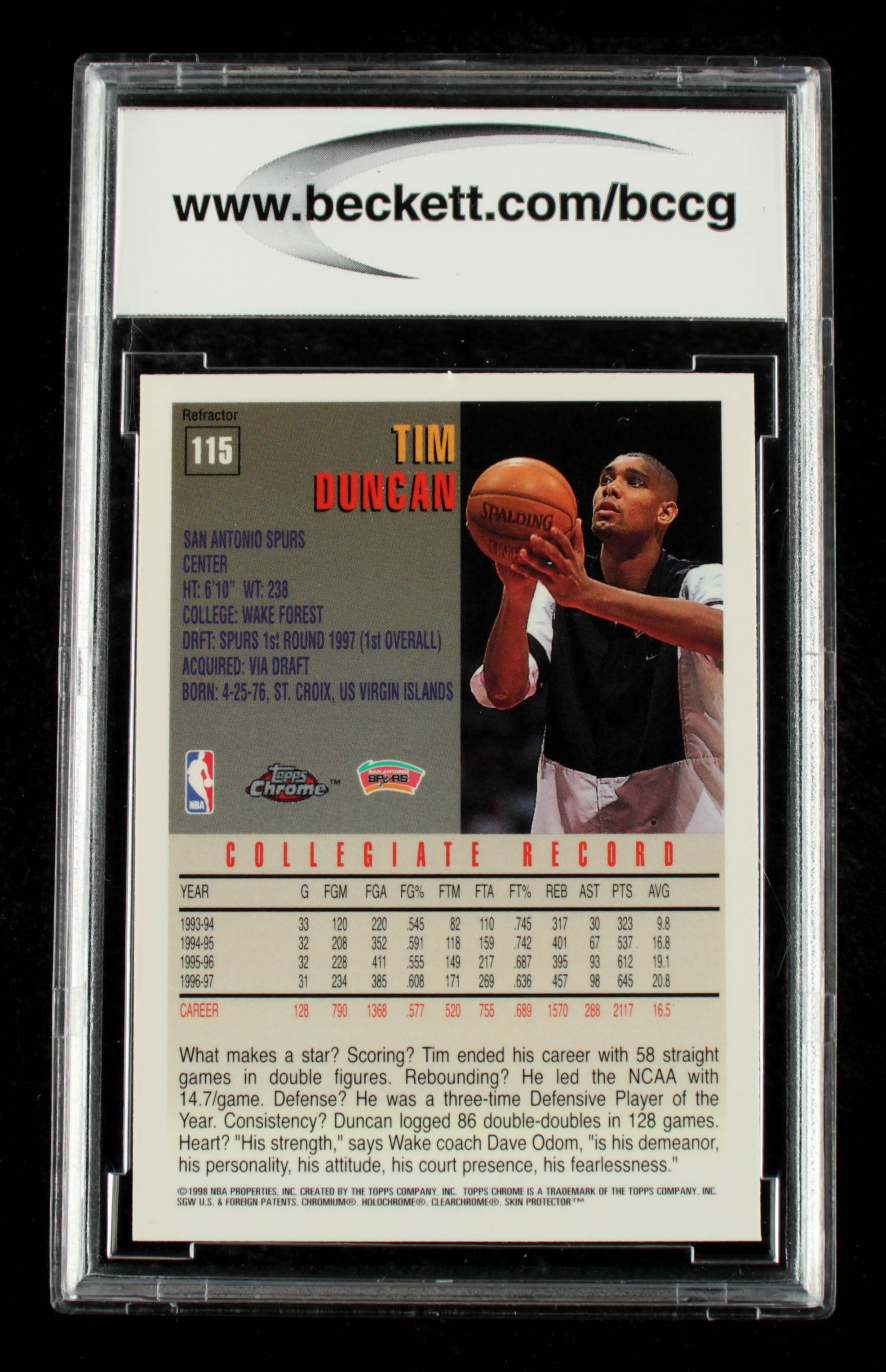Tim Duncan 1997-98 Topps Chrome Refractors #115 (BCCG 10)