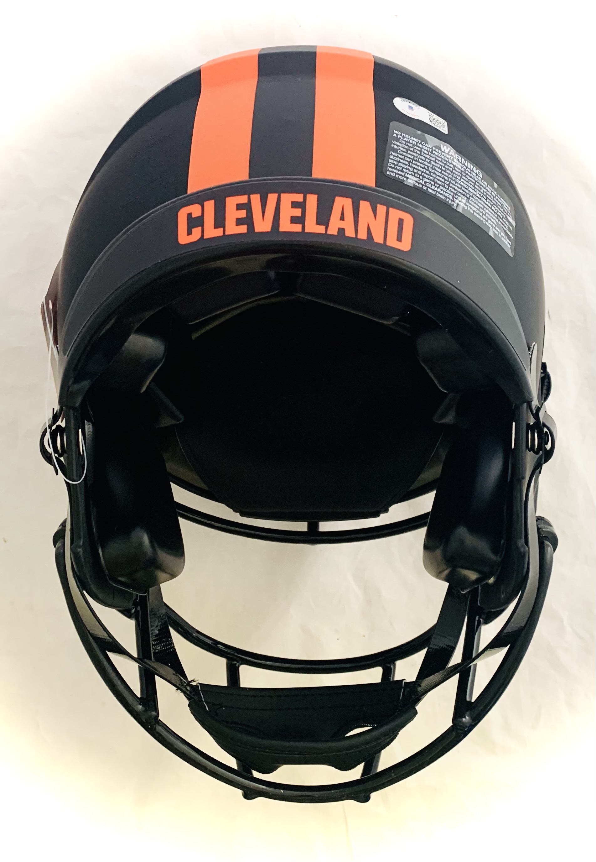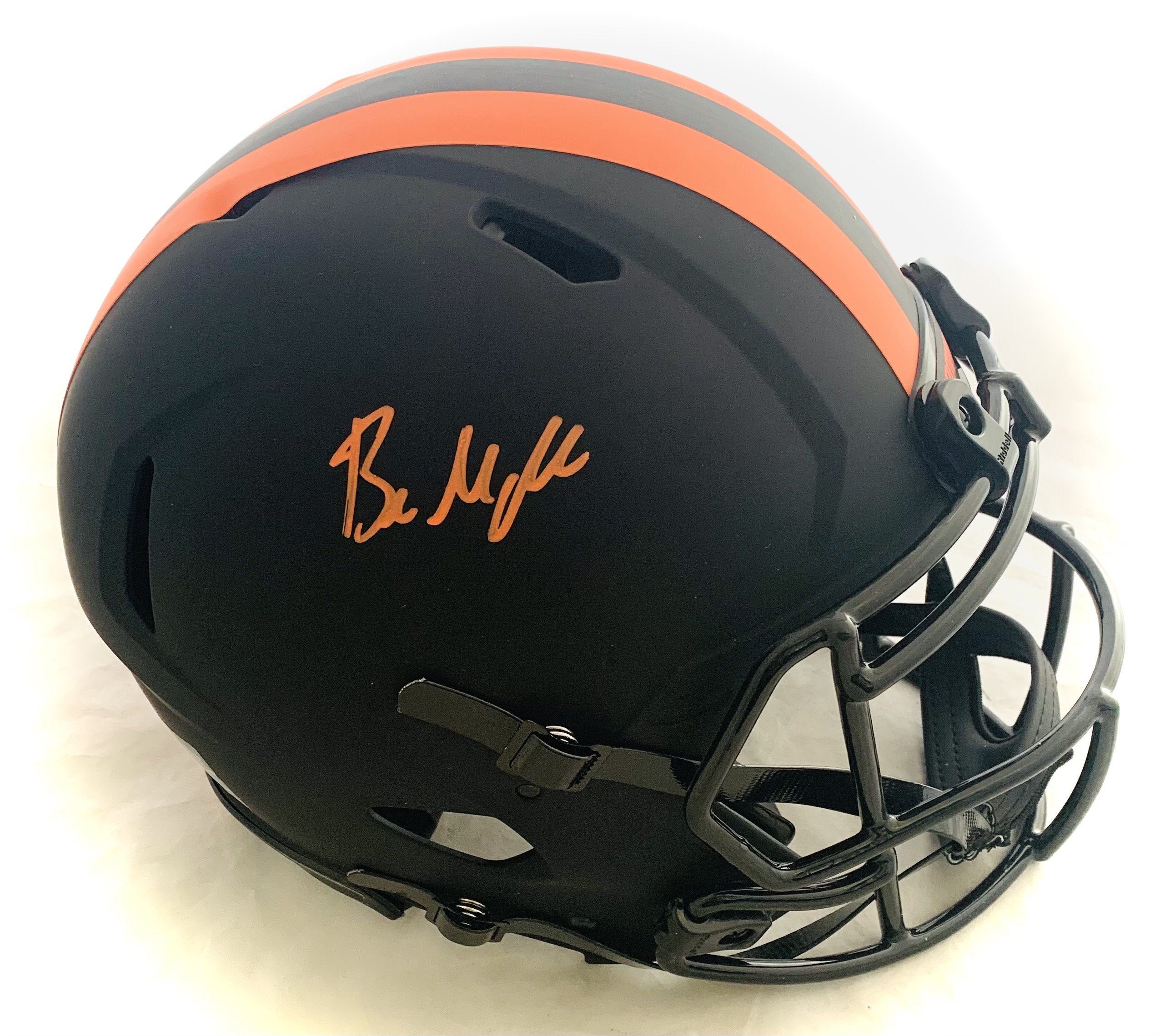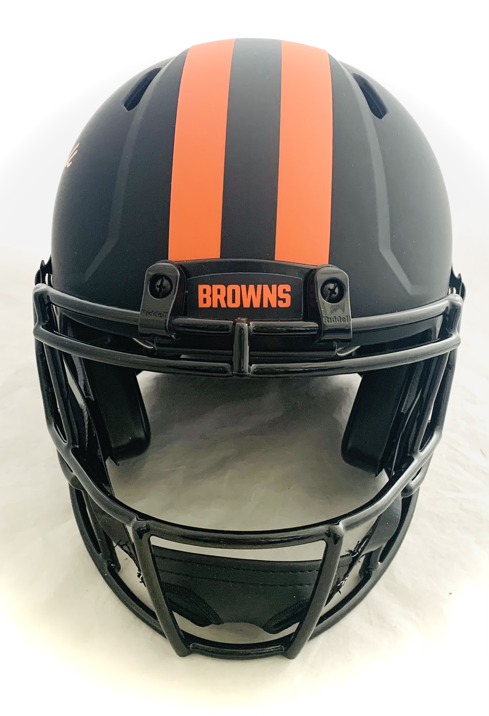 Riddell Cleveland Browns full-size authentic on-field eclipse speed speed helmet. Hand-signed by Baker Mayfield.