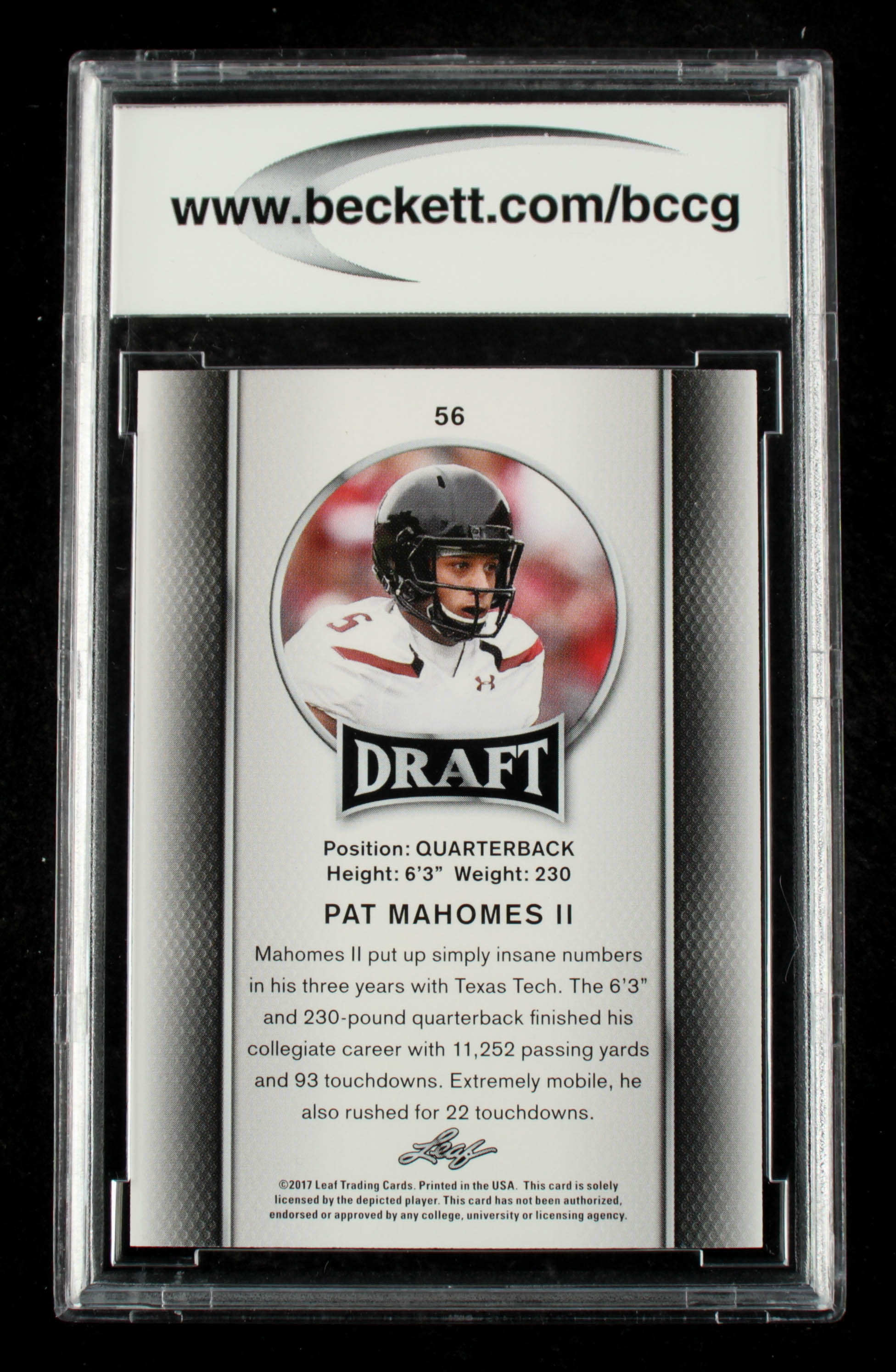 Pat Mahomes II 2017 Leaf Draft #56 (BCCG 10)