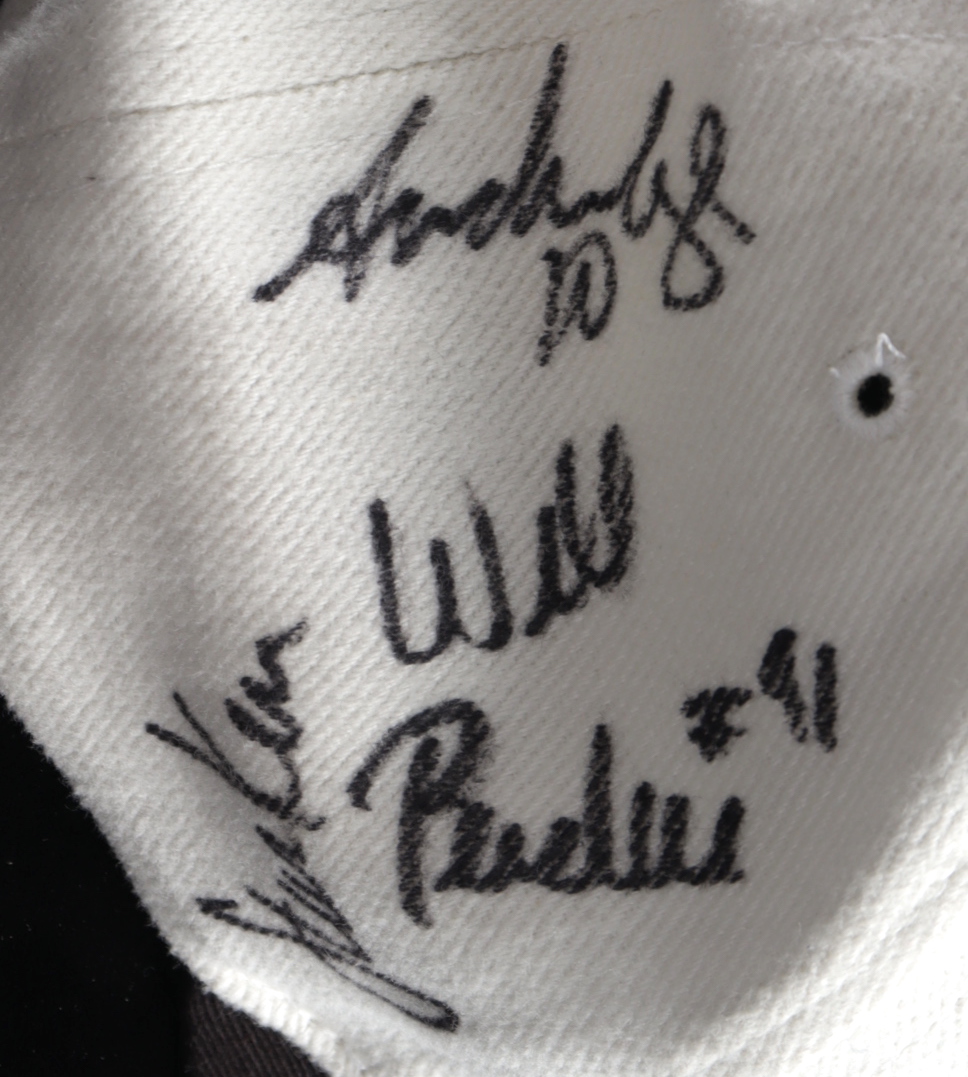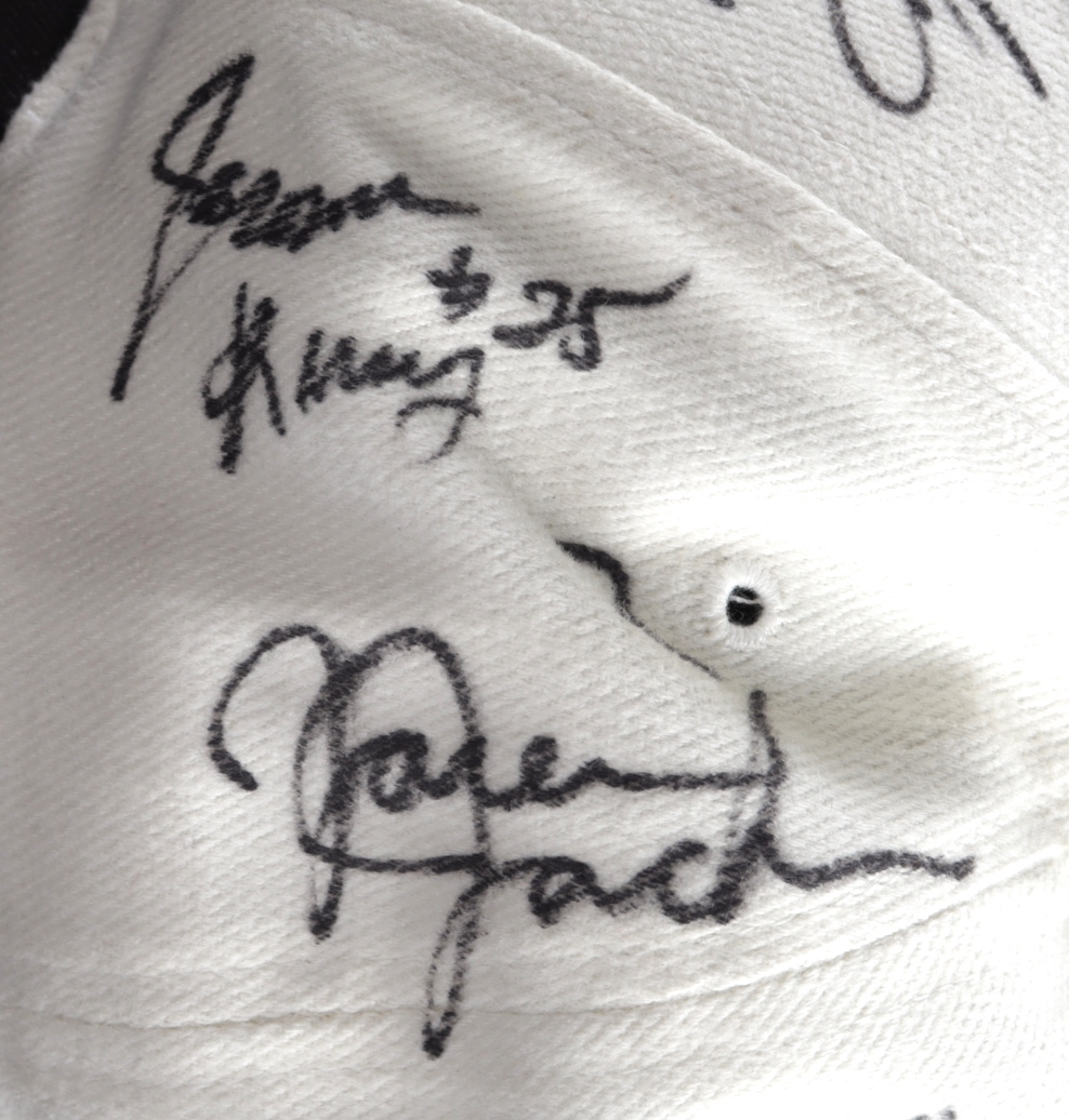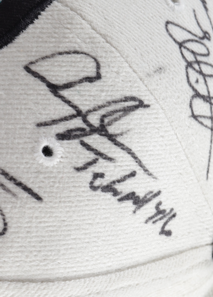 San Antonio Spurs adjustable hat has been hand-signed by (12) members of the 1998-99 team including Tim Duncan, David Robinson, Sean Elliott, Steve Kerr, Will Perdue, Avery Johnson, Jerone Kersey, Jaren Jackson, Anotonio Daniels, Mario Elie, Malik Rose and Andrew Gaze.