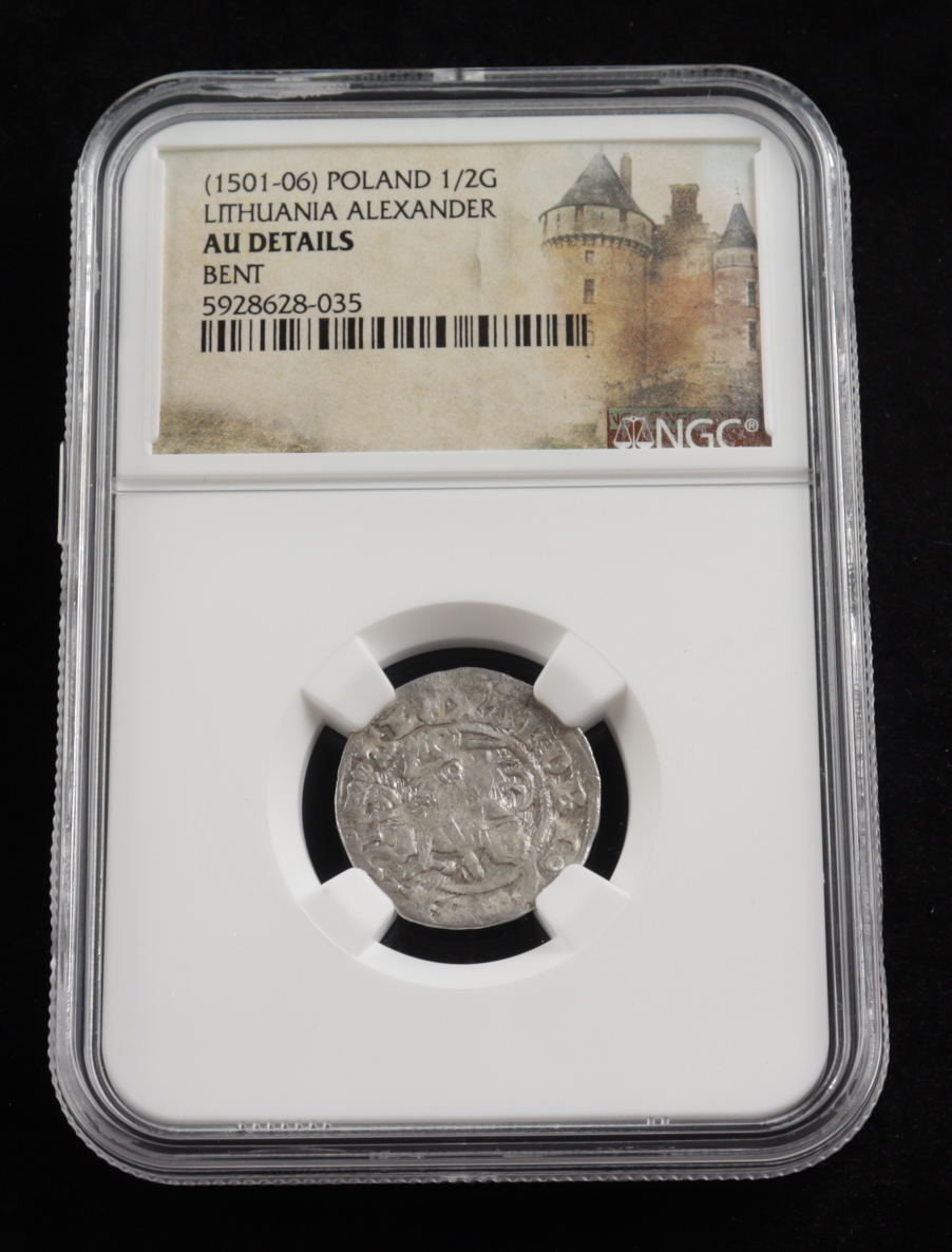 Alexander I (1501-1506) Lithuania 1/2 Groschen Medieval Silver Coin (NGC AU Details)