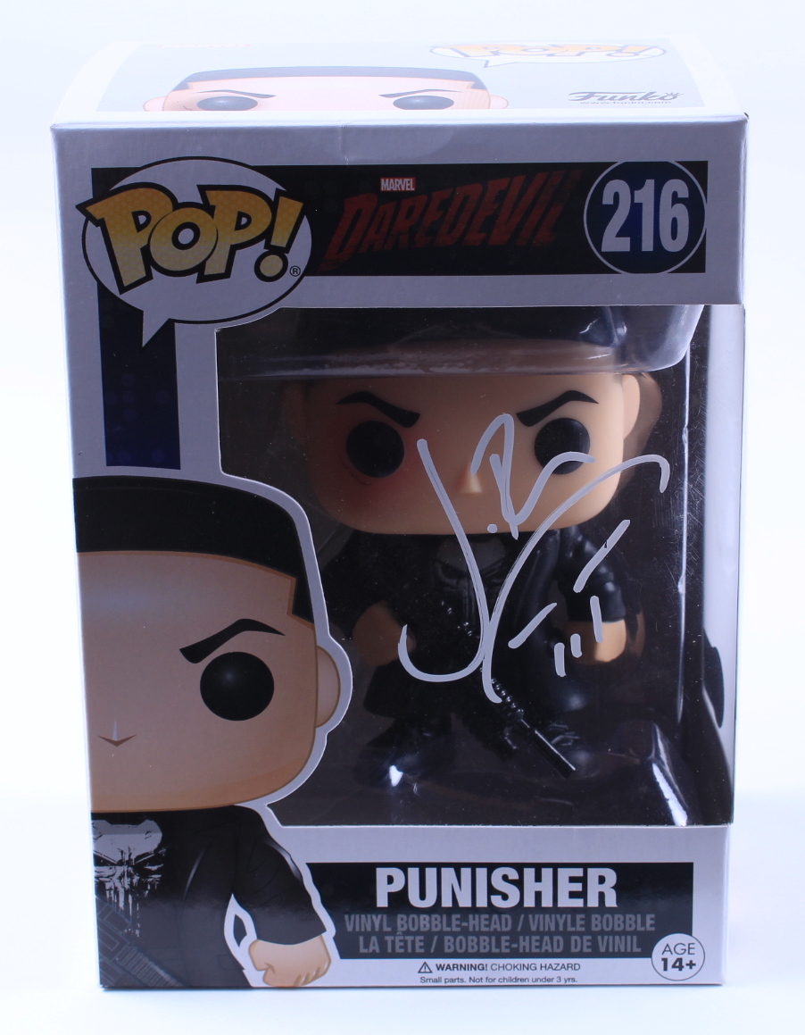 Funko Pop! vinyl figure measures approximately 4" tall and has been hand-signed on the packaging by Jon Bernthal (Frank Castle / The Punisher).