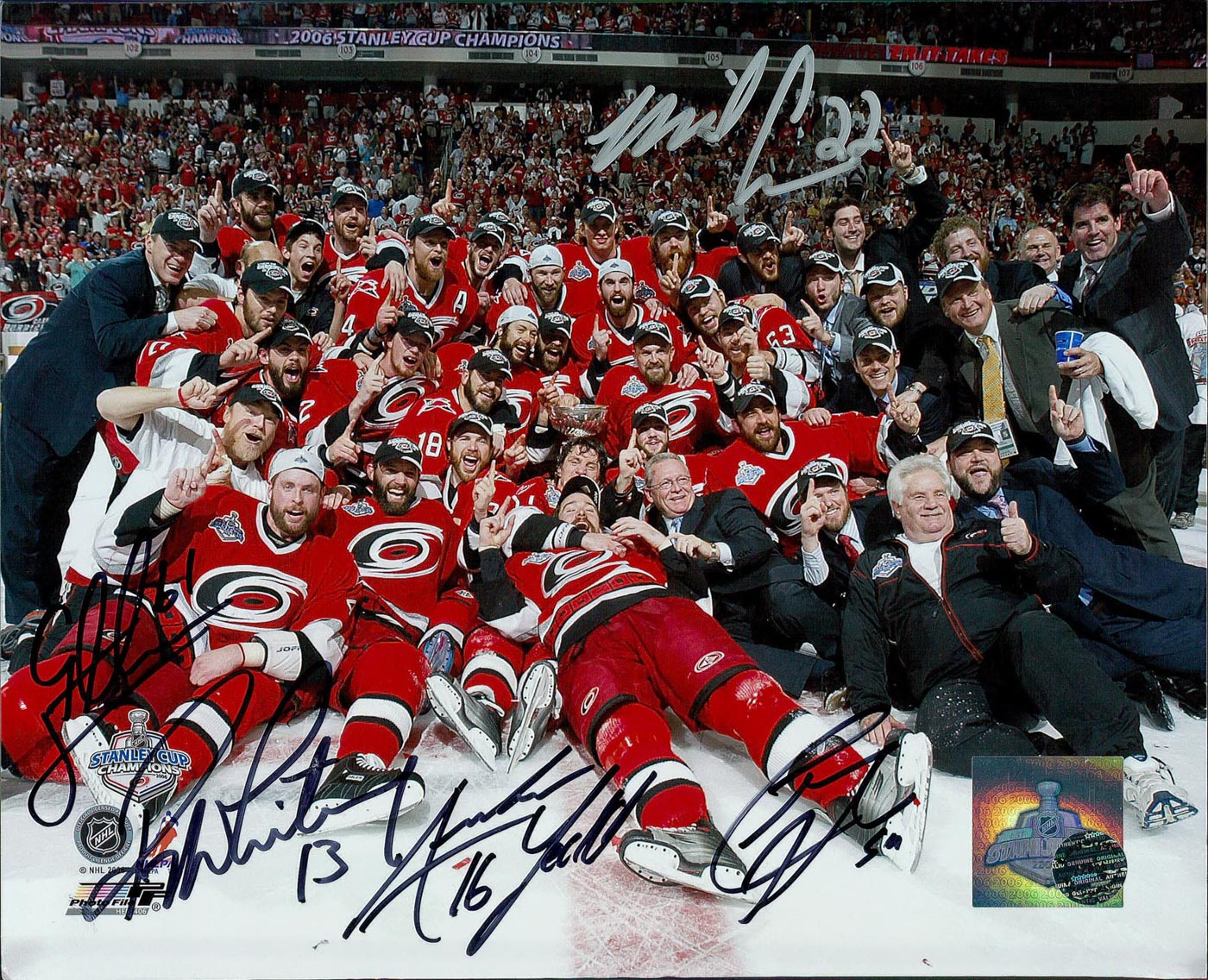 Multi-Signed 2006 Carolina Hurricanes 8x10 Photo Signed by (5) With Ray Whitney, Cory Stillman, Chad Larose, Andrew Ladd & Mike Commodore (Legends COA)