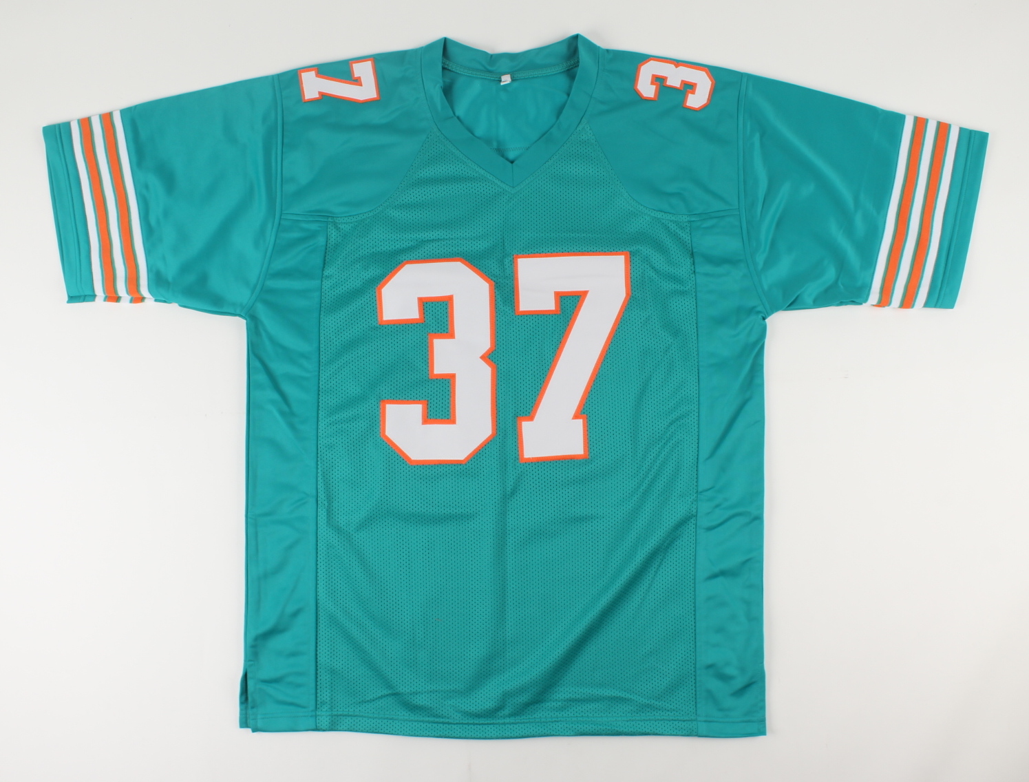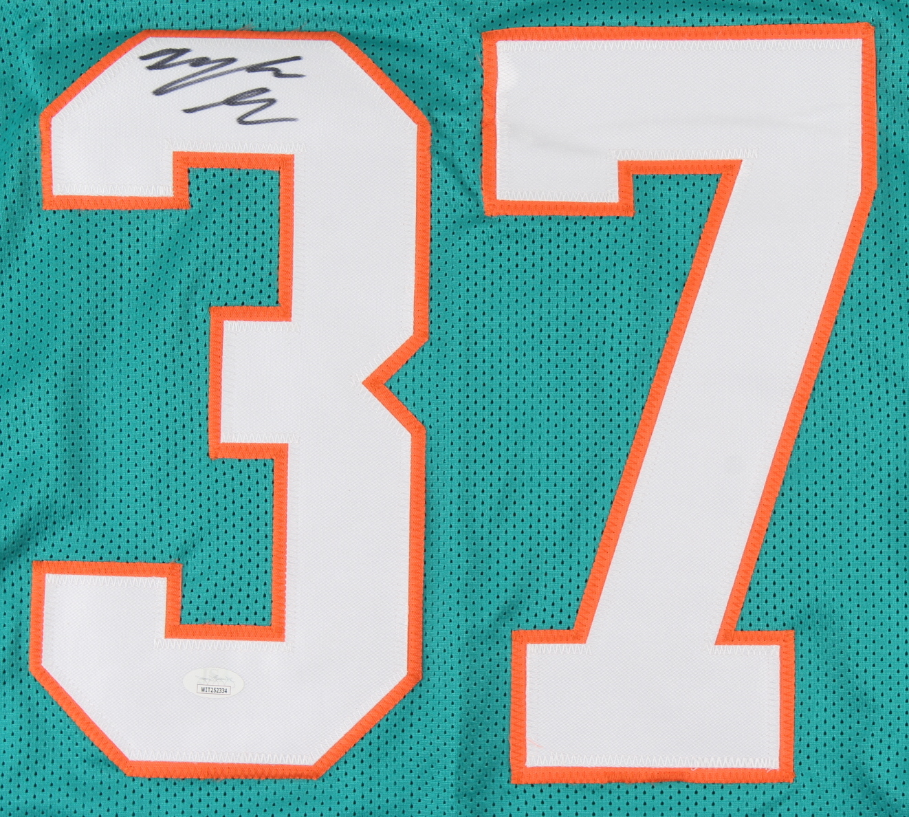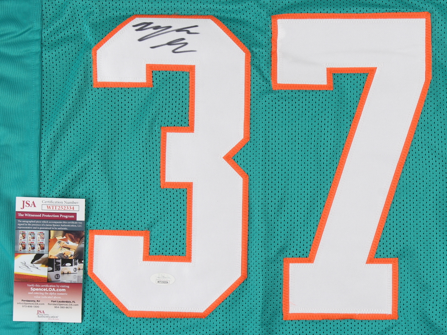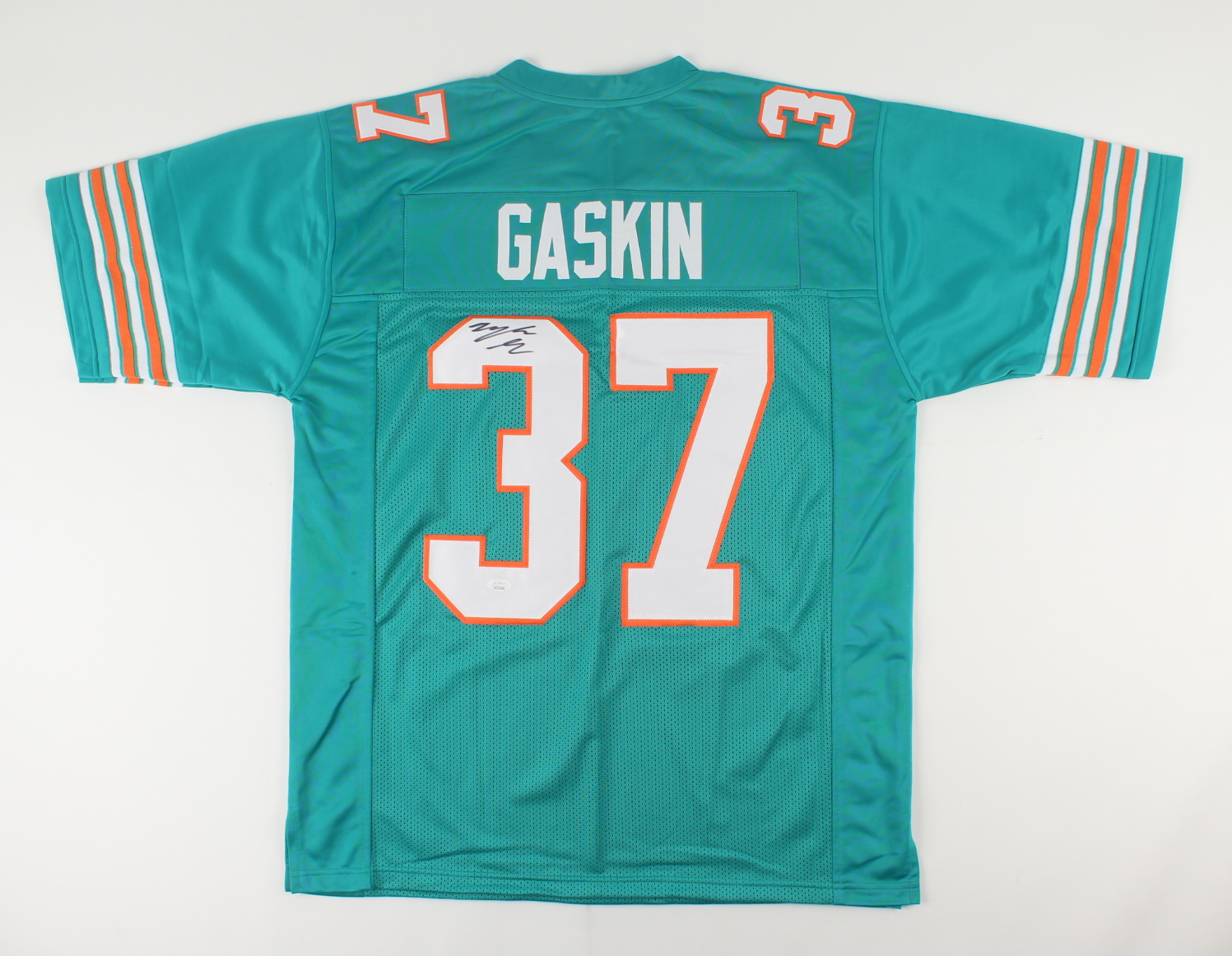 Custom on-field style jersey. Everything is sewn on, size XL. Hand-signed by Myles Gaskin.