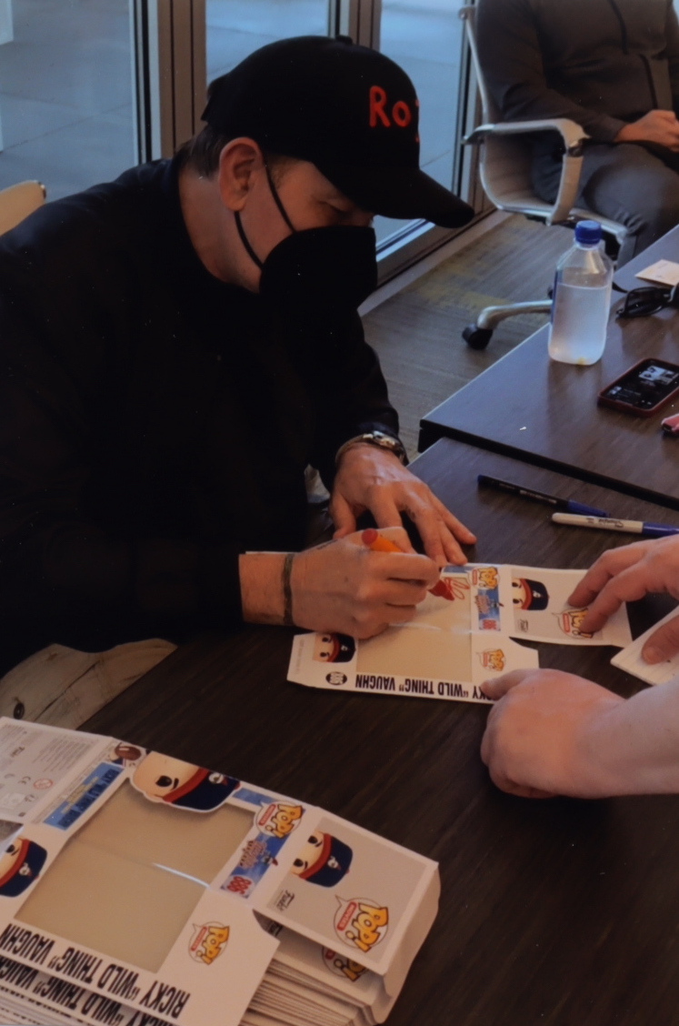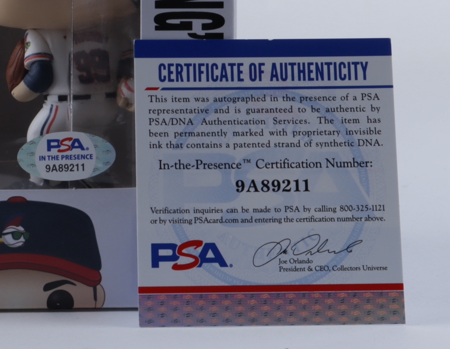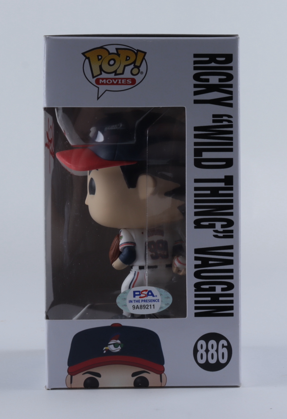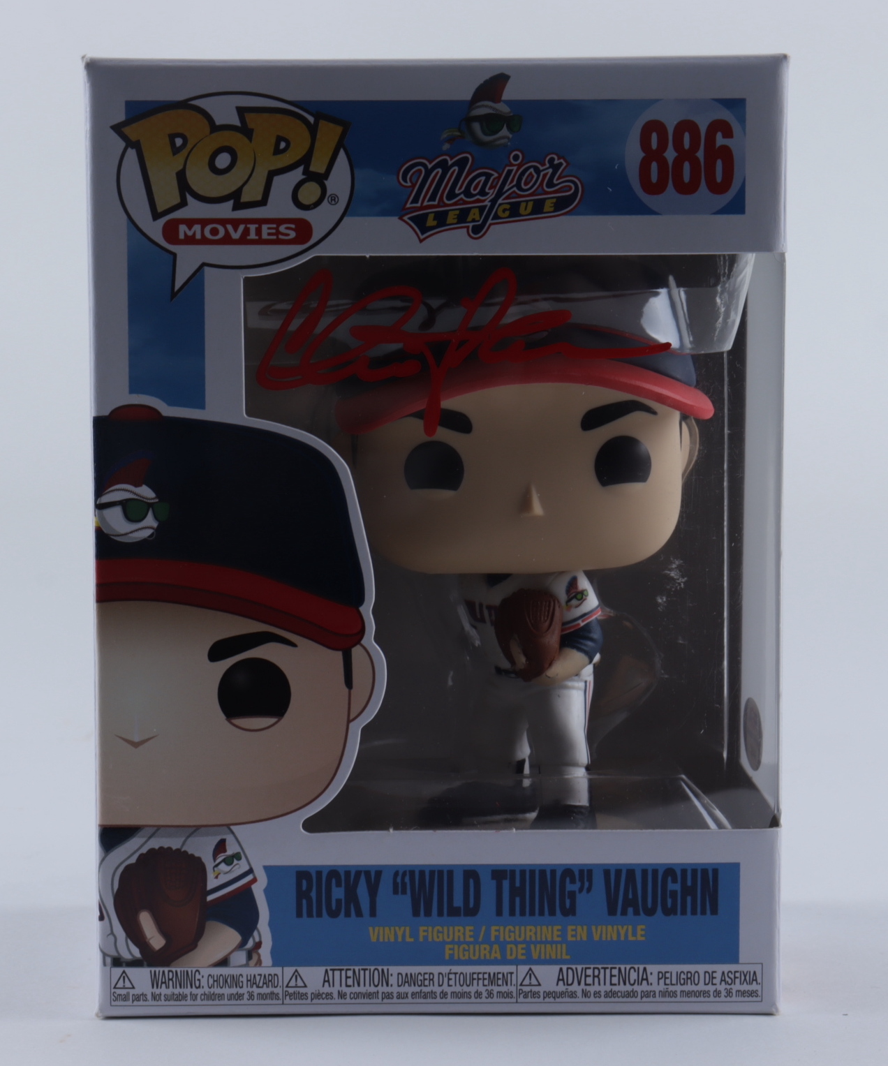 Funko Pop! vinyl figure measures approximately 4" tall and has been hand-signed on the packaging by Charlie Sheen (Ricky "Wild Thing" Vaughn). Please note, the packaging shows signs of wear, see images for details.