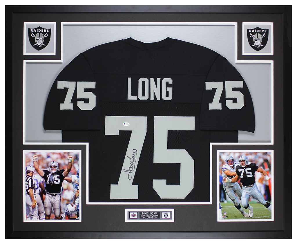 Custom frame measures approximately 35" x 43" in size. Features a custom on-field style jersey signed by Howie Long (HOF).