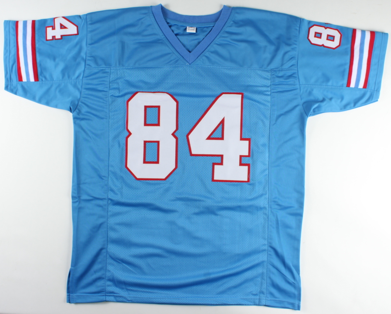 Custom on-field style jersey. Everything sewn on, size XL. Has been hand-signed by Billy Johnson. Johnson's career stats have been sewn on below the reverse numbers.