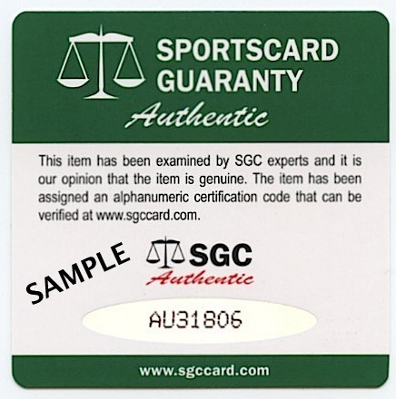 The autograph includes an official Sportscard Guaranty (SGC) hologram and matching COA for authenticity purposes.