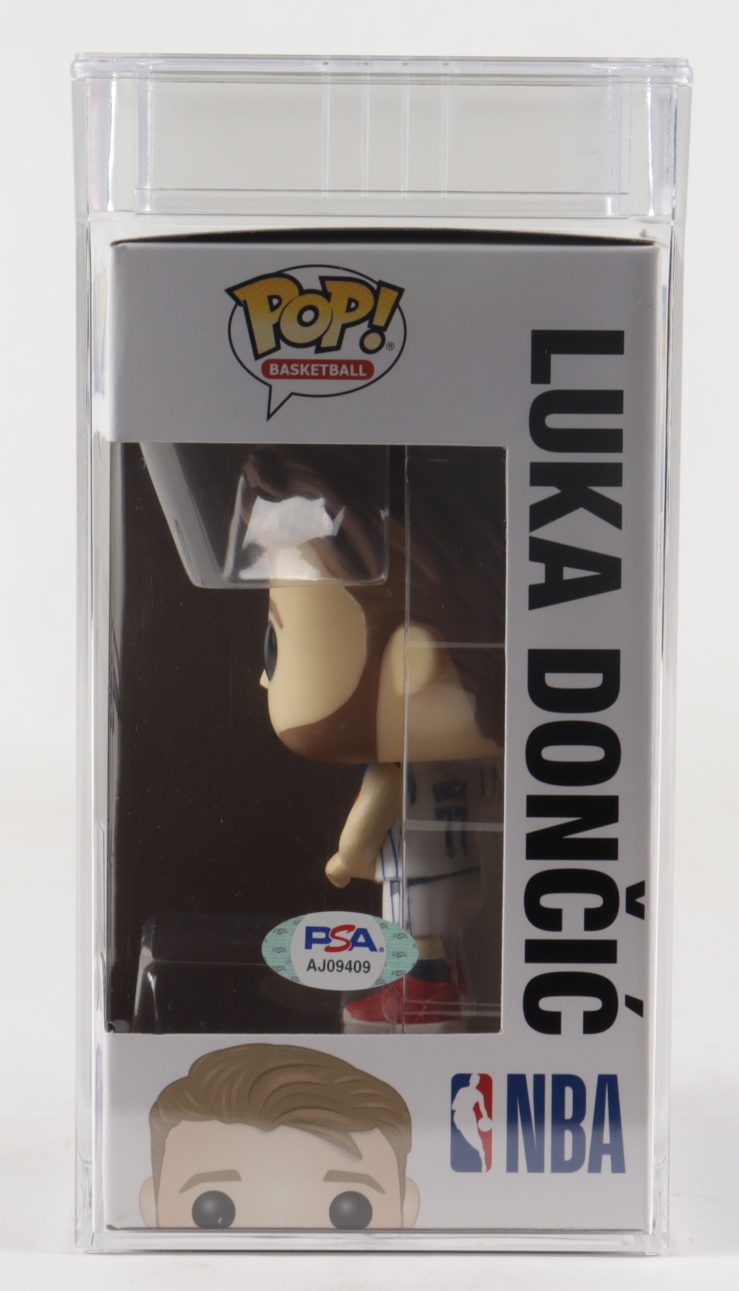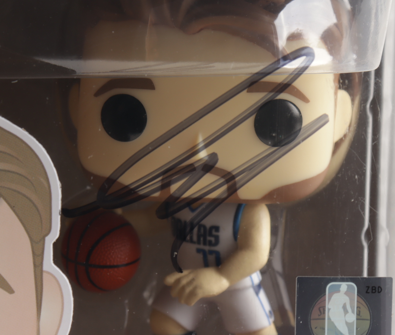 Funko Pop! vinyl figure measures approximately 4" tall and comes in the original box. Hand-signed on the packaging by Luka Doncic (Dallas Mavericks).