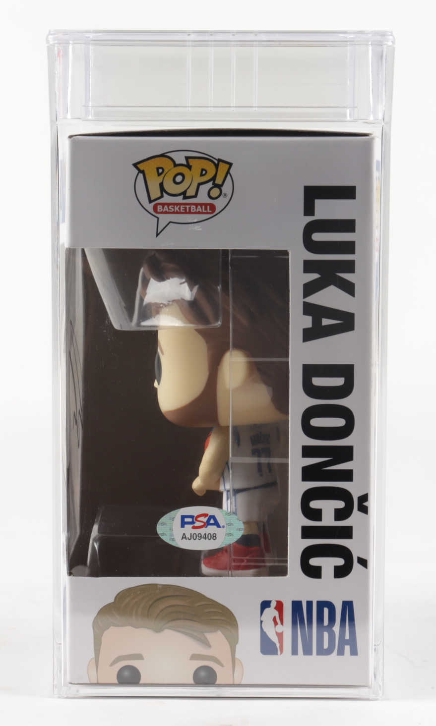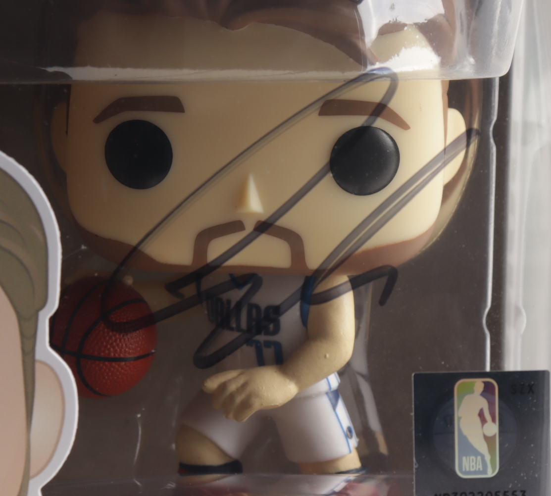 Funko Pop! vinyl figure measures approximately 4" tall and has been hand-signed on the packaging by Luka Doncic (Dallas Mavericks).