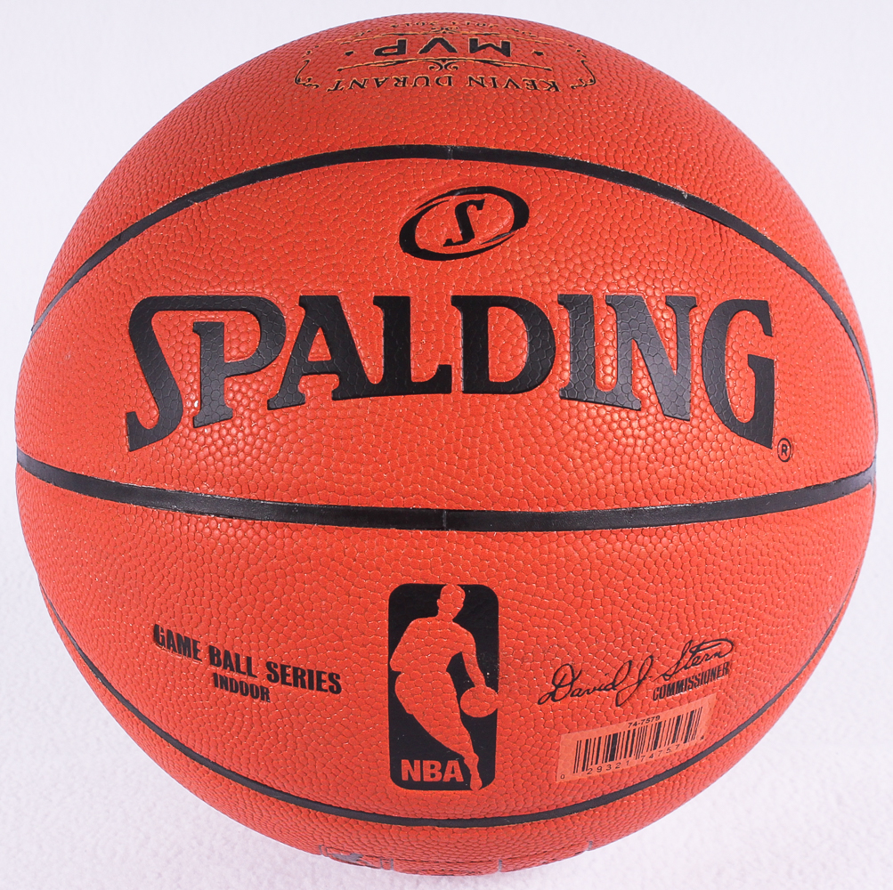 Full-size Spalding Game Ball Series Basketball. Hand-signed in silver paint pen by Kevin Durant (Thunder). Basketball is limited edition and has been hand-numbered #1/35.