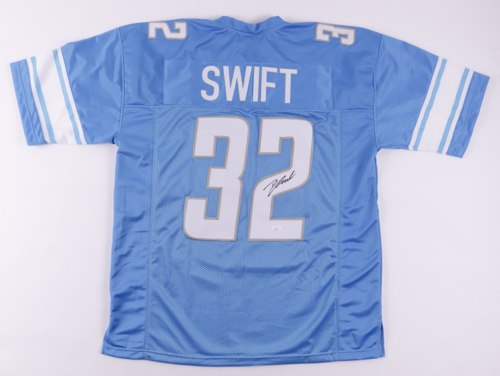 Custom on-field style jersey. Everything is sewn on, size XL. Hand-signed by D'Andre Swift.