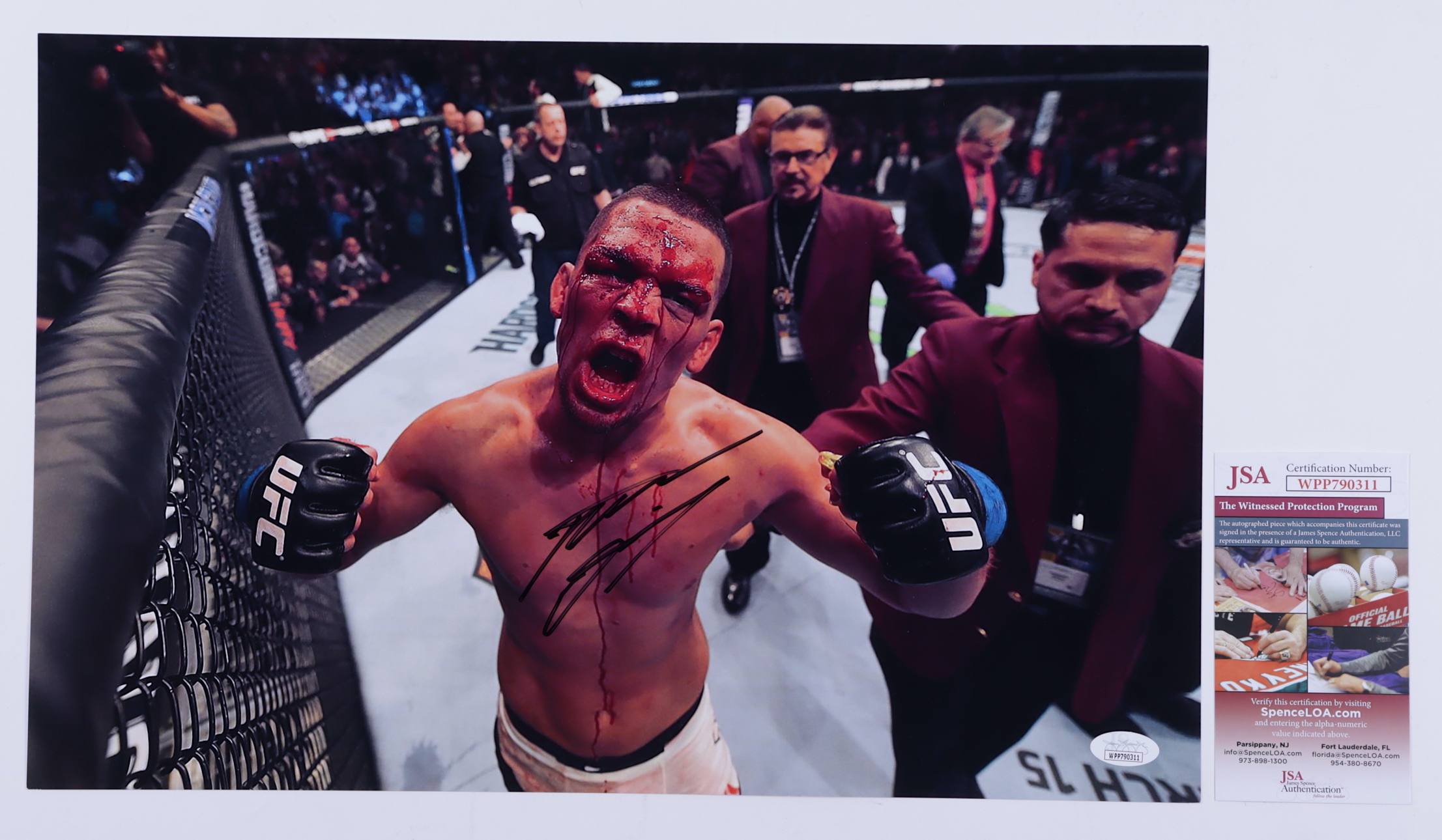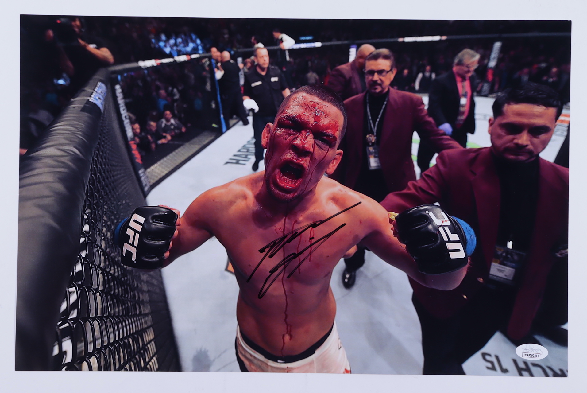 Photo measures 11" x 17" in size and has been hand-signed by Nate Diaz.