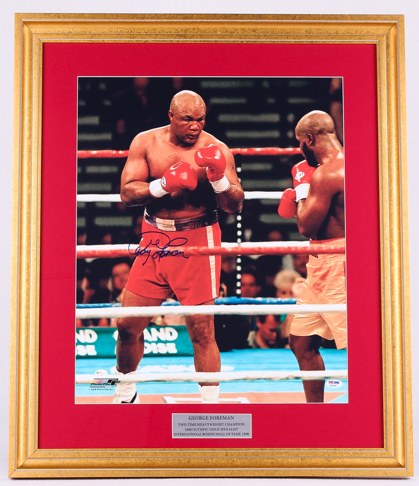George Foreman Signed 23x27 Custom Framed Photo Display (PSA COA)