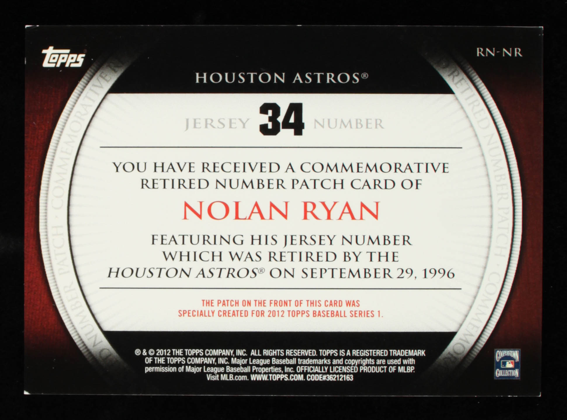 Nolan Ryan 2012 Topps Retired Number Patches #NR