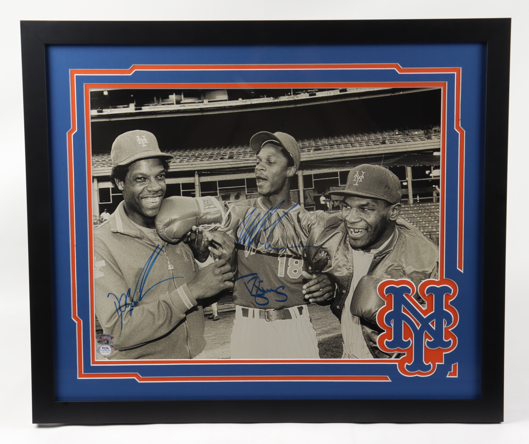 Custom frame measures 22" x 26" in size and features a photo that has been hand-signed by Dwight Gooden (New York Mets), Darryl Strawberry (New York Mets) and Mike Tyson (HOF).