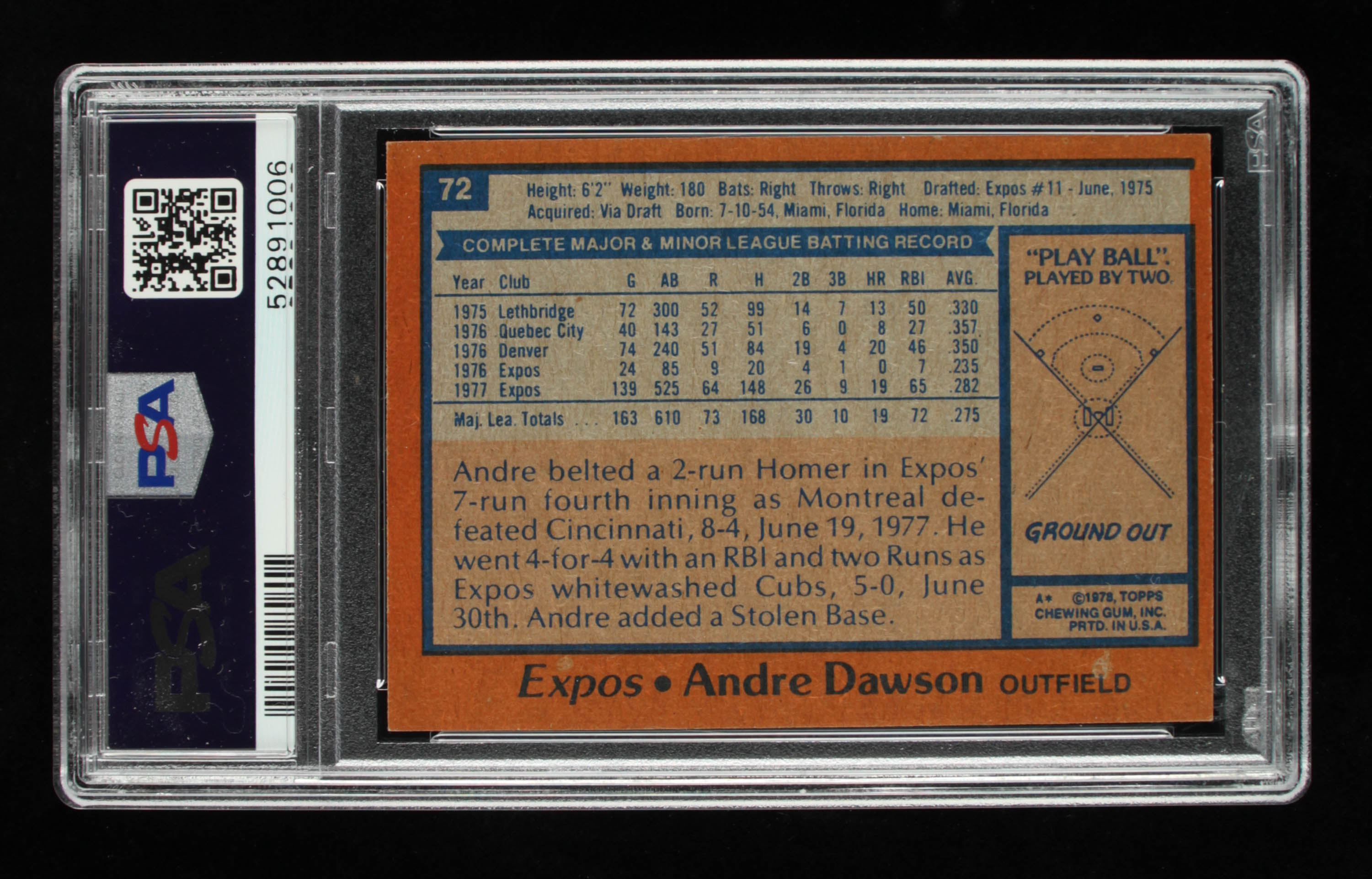 Andre Dawson Signed 1978 Topps #72 (PSA Encapsulated)
