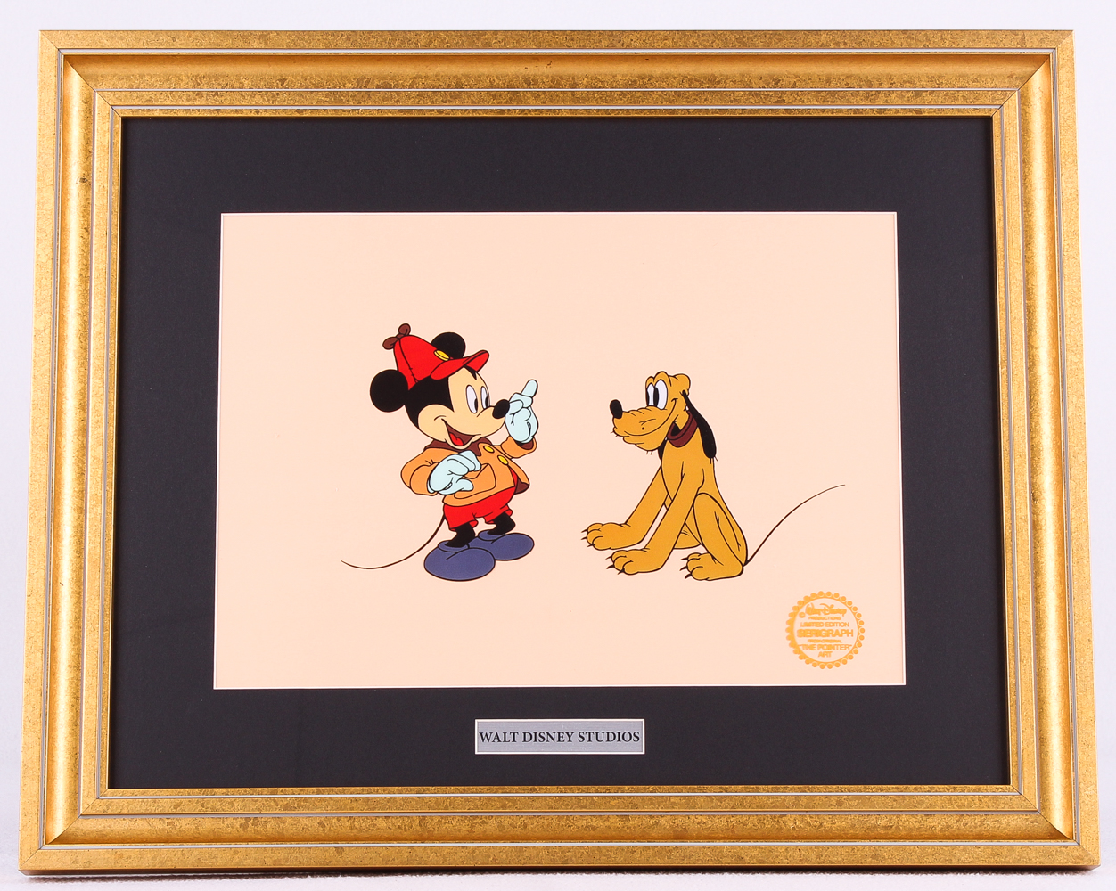 Custom framed display measures 17" x 21" in size. Features a Walt Disney serigraph cel animation from Mickey Mouse. The serigraph cel is a limited edition. Please see photos for more details.