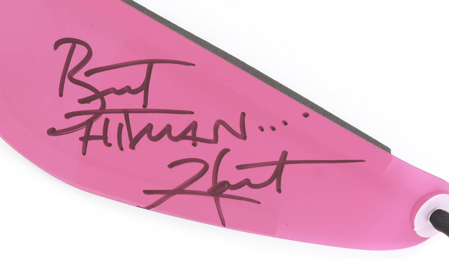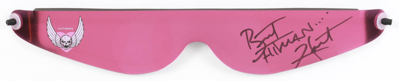 Pink custom sunglasses have been hand-signed by Bret "The Hitman" Hart (HOF).