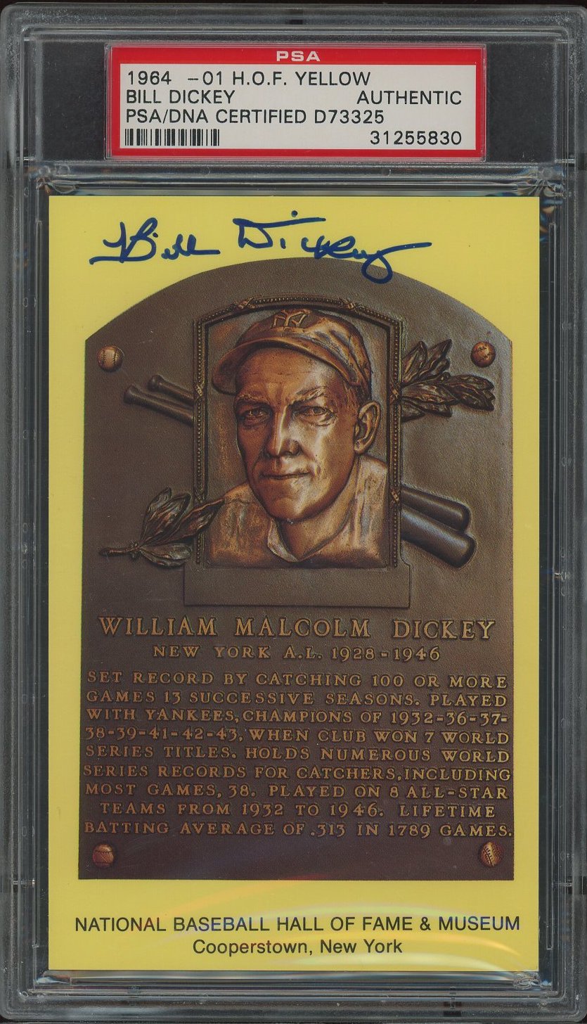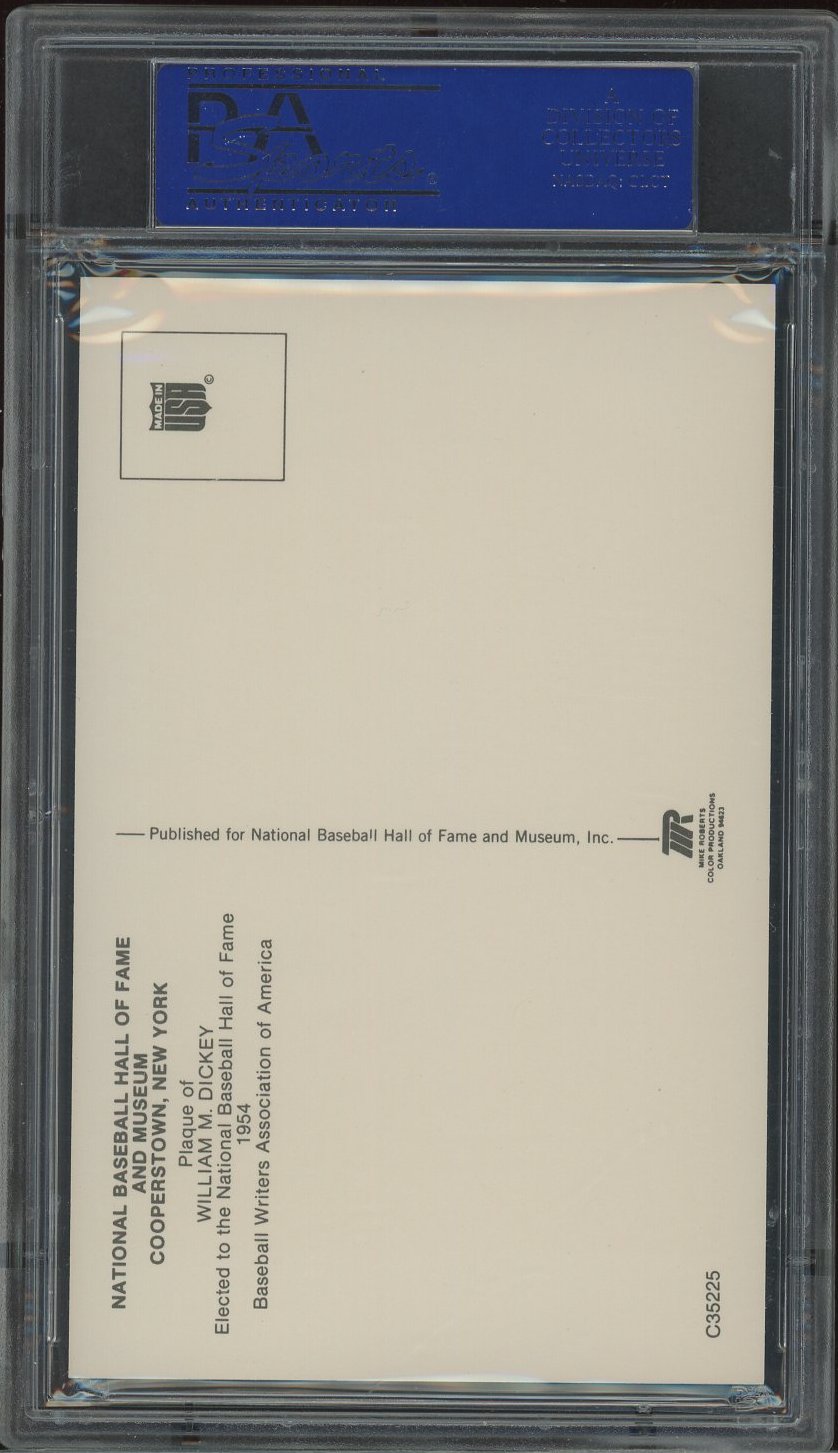 Bill Dickey Signed Gold Hall of Fame Plaque Postcard (PSA Encapsulated)