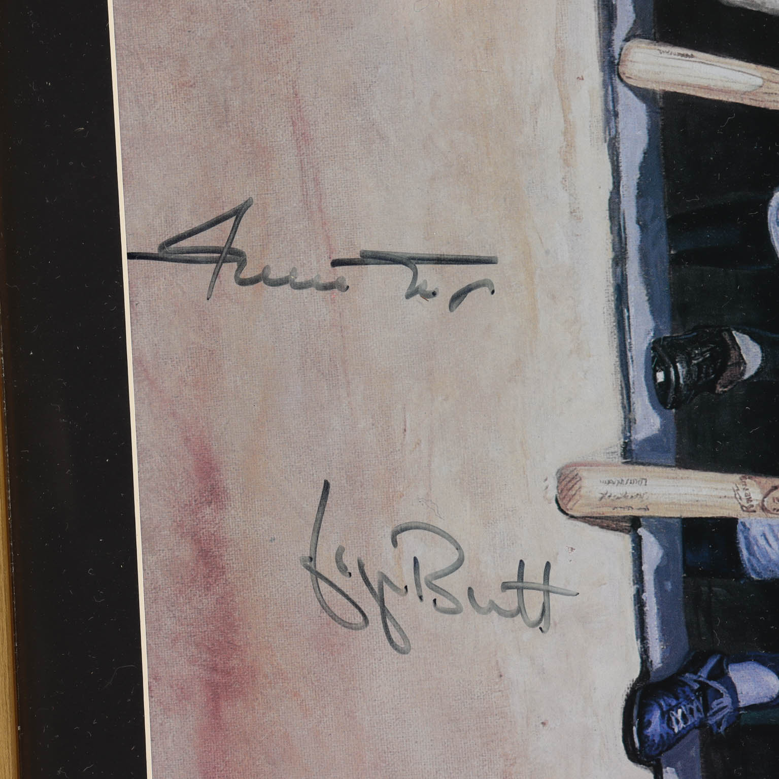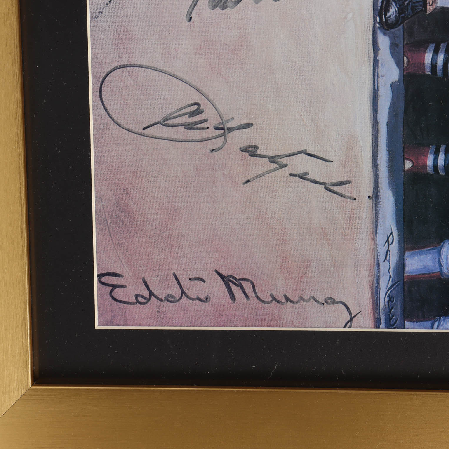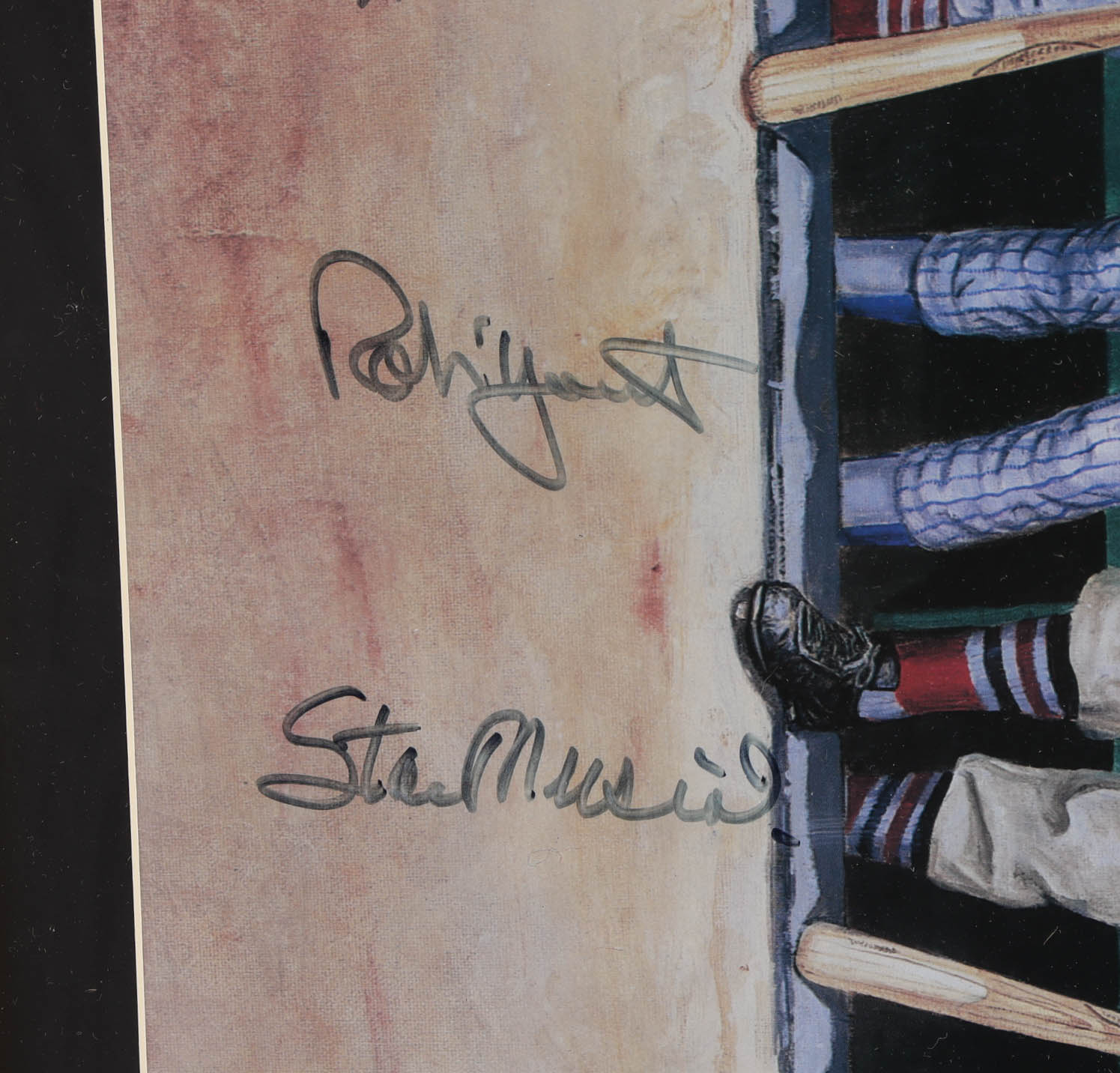 Custom frame measures 21" x 36" in size and features a photo of the 3000 Hit Club and has been signed by (12) including Hank Aaron, Willie Mays, Carl Yastrzemski, Stan Musial, Pete Rose, Lou Brock, Robin Yount, George Brett, Dave Winfield, Al Kaline, Rod Carew, and Eddie Murray. Please note, there is wear along the upper left corner.