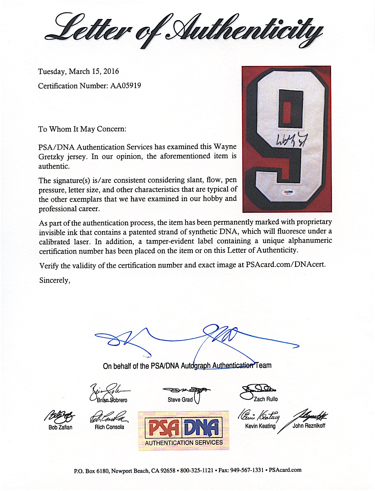 The autograph includes an official PSA/DNA hologram and matching LOA for authenticity purposes.