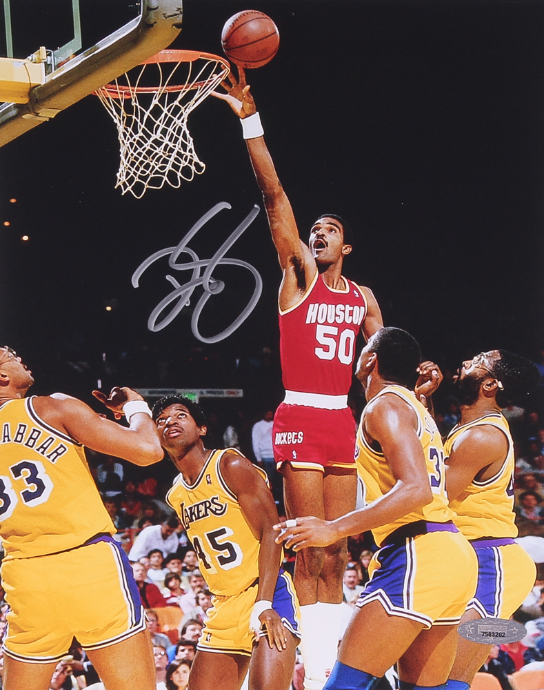 Photo measures 8"x10" in size and has been hand-signed in silver paint pen by Ralph Sampson (Rockets).
