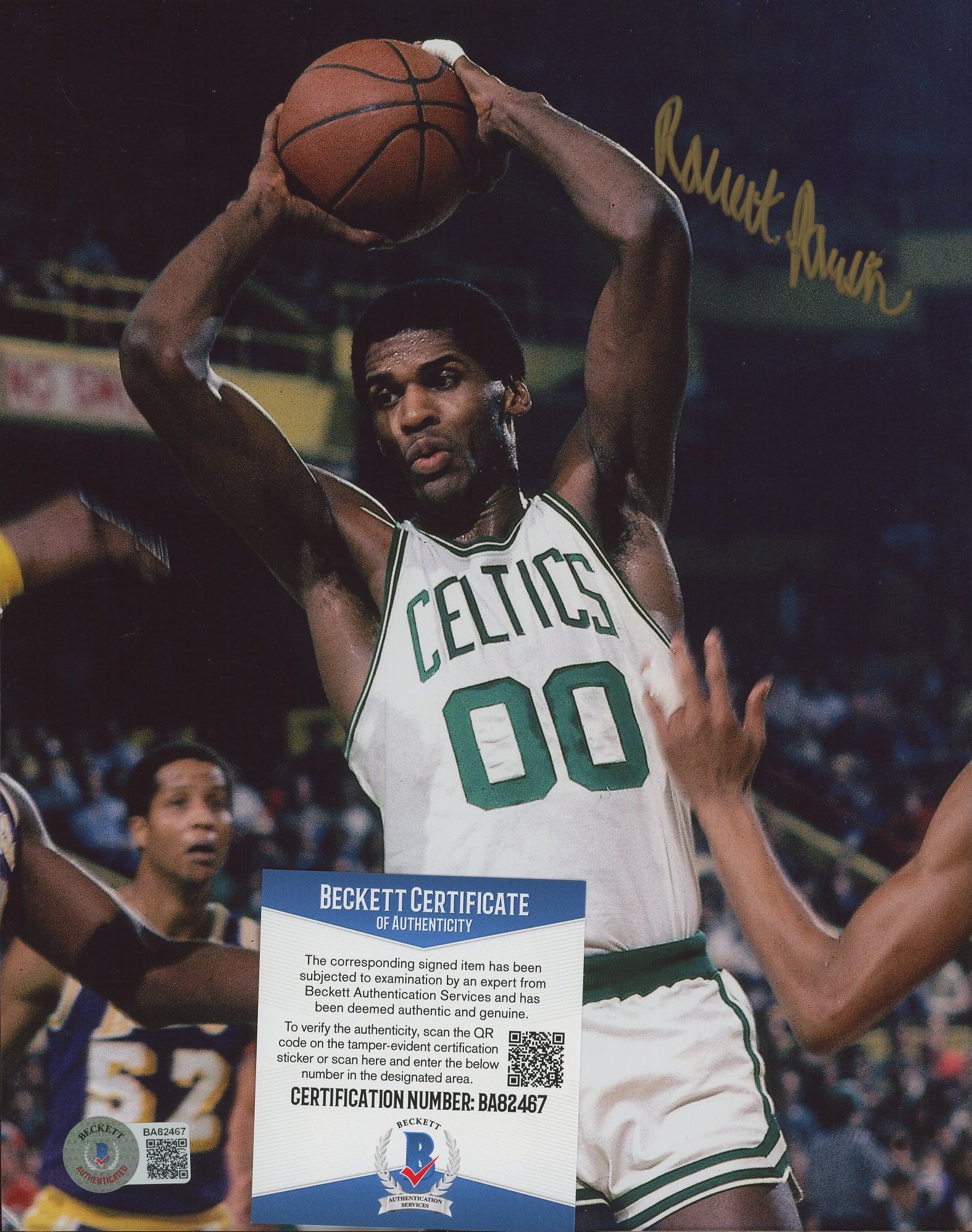 Photo measures 8" x 10" in size and has been hand-signed by Robert Parrish (Boston Celtics, HOF).