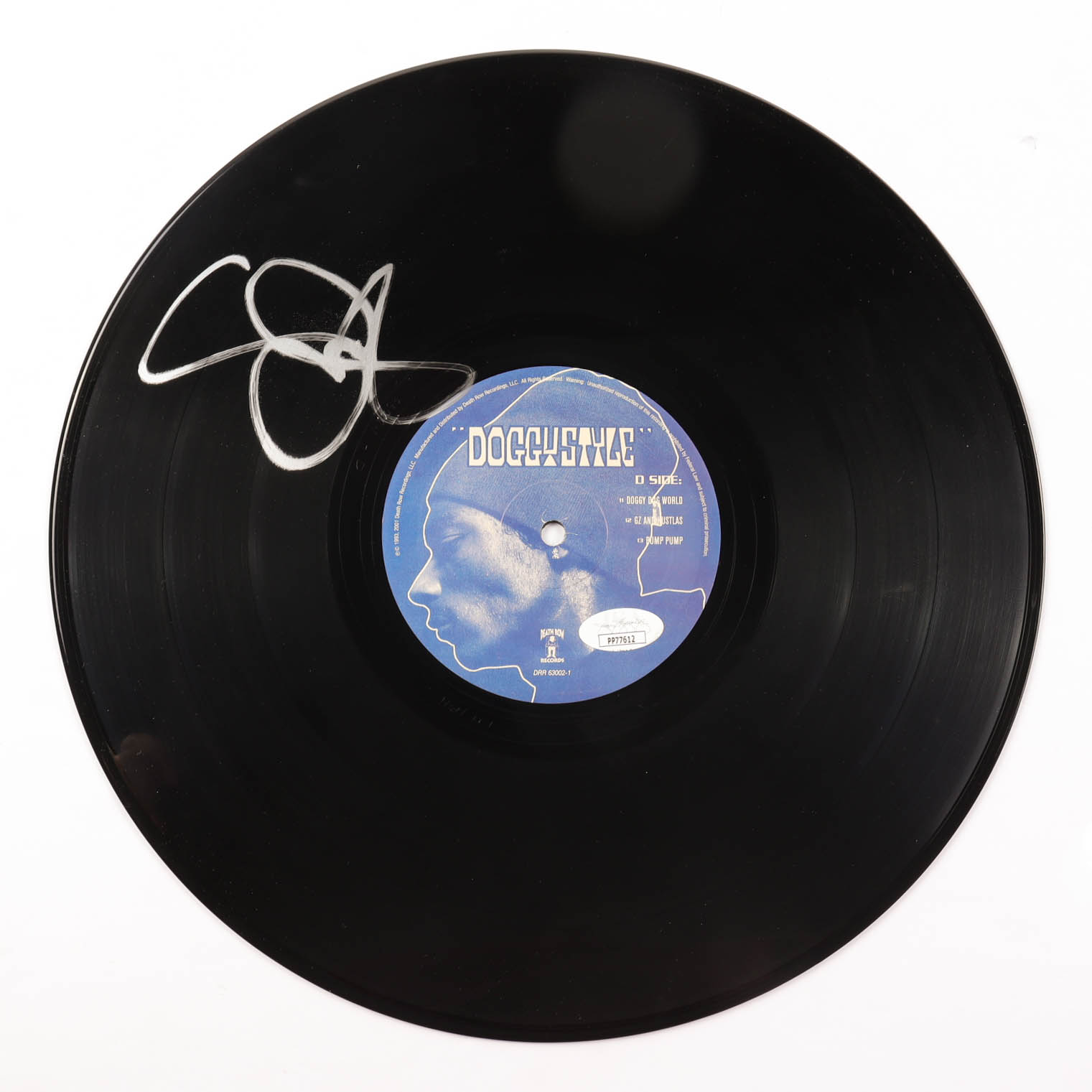 "Doggystyle" vinyl record album. Hand-signed on the vinyl record by Snoop Dogg. Please note, the album cover is not included.