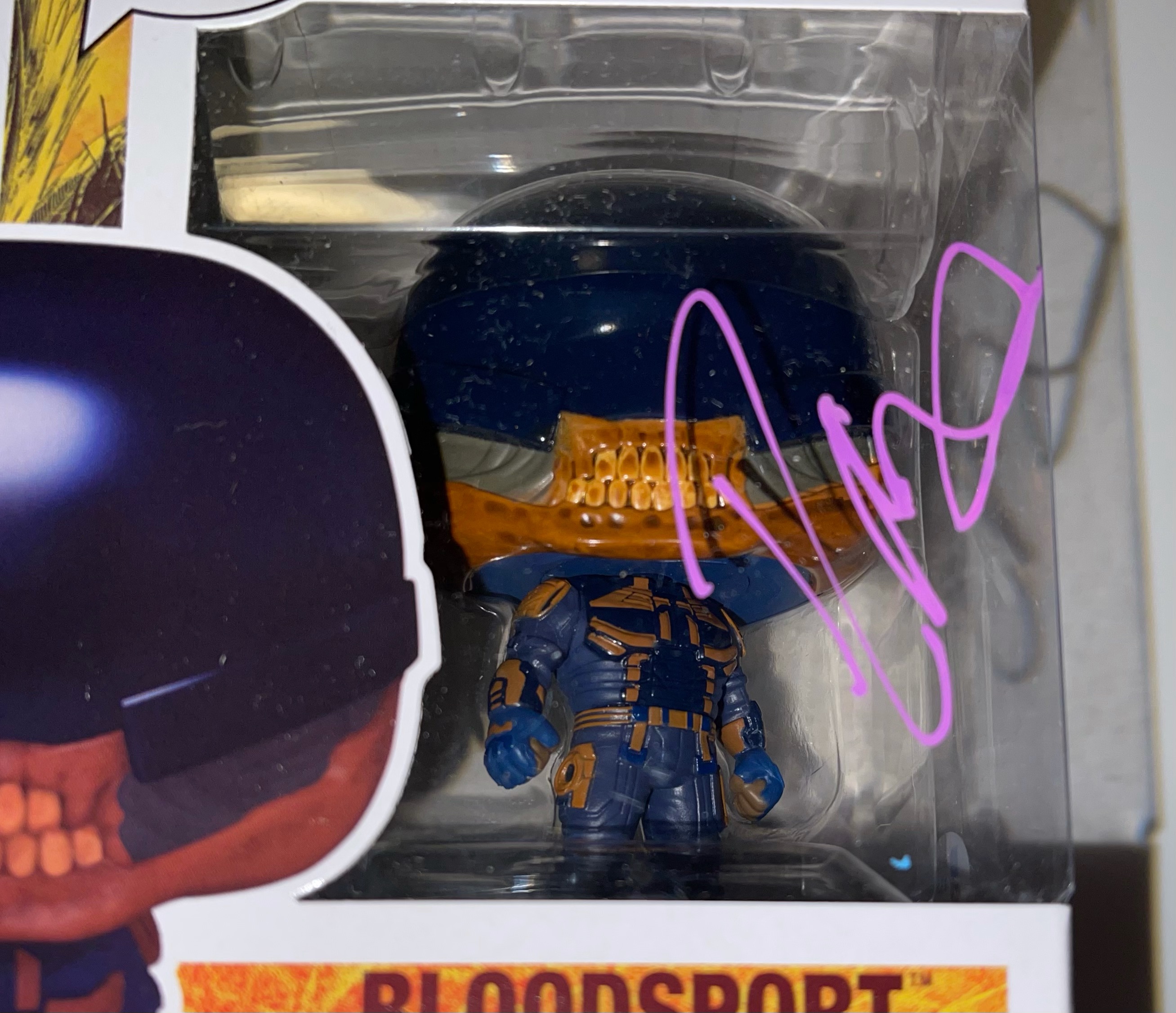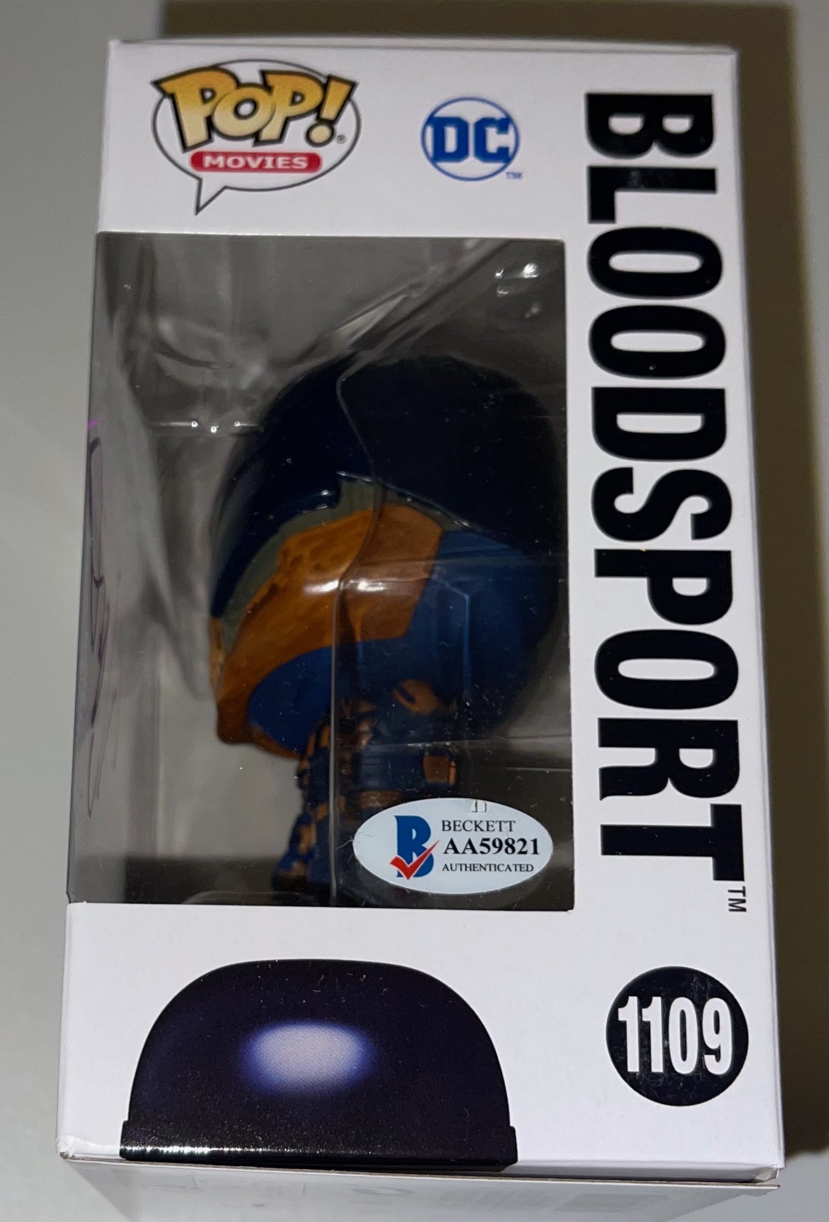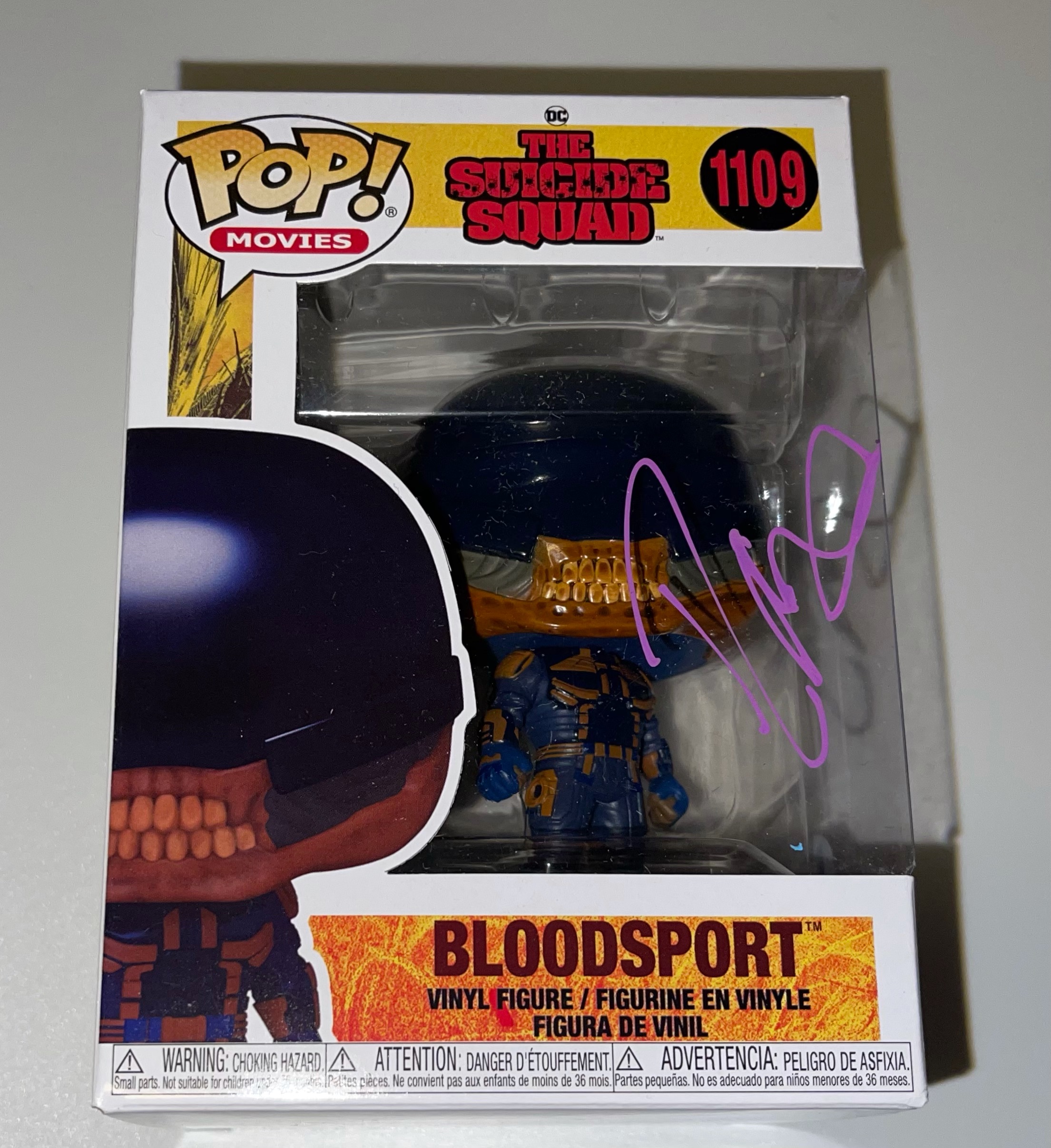 Funko Pop! vinyl figure measures approximately 4" tall and has been hand-signed on the packaging by Idris Elba (Bloodsport).