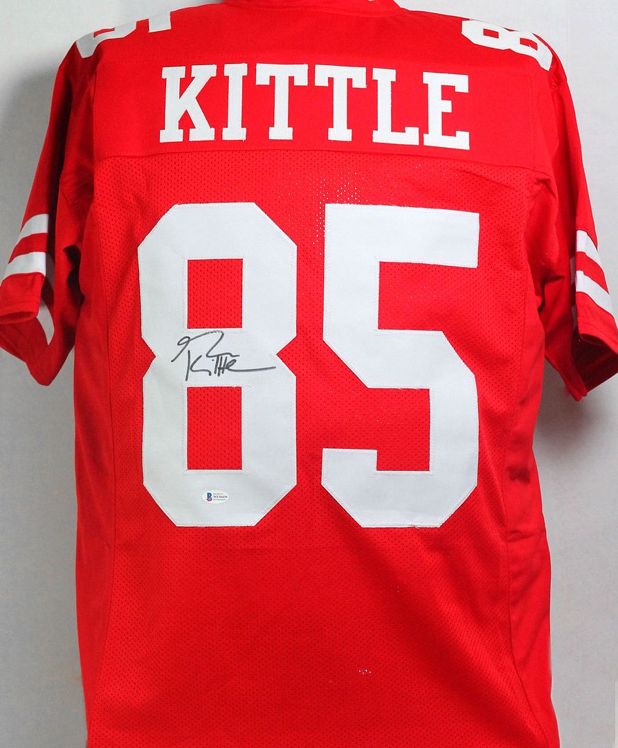 Custom on-field style jersey. Everything sewn on, size XL. Hand-signed by George Kittle.