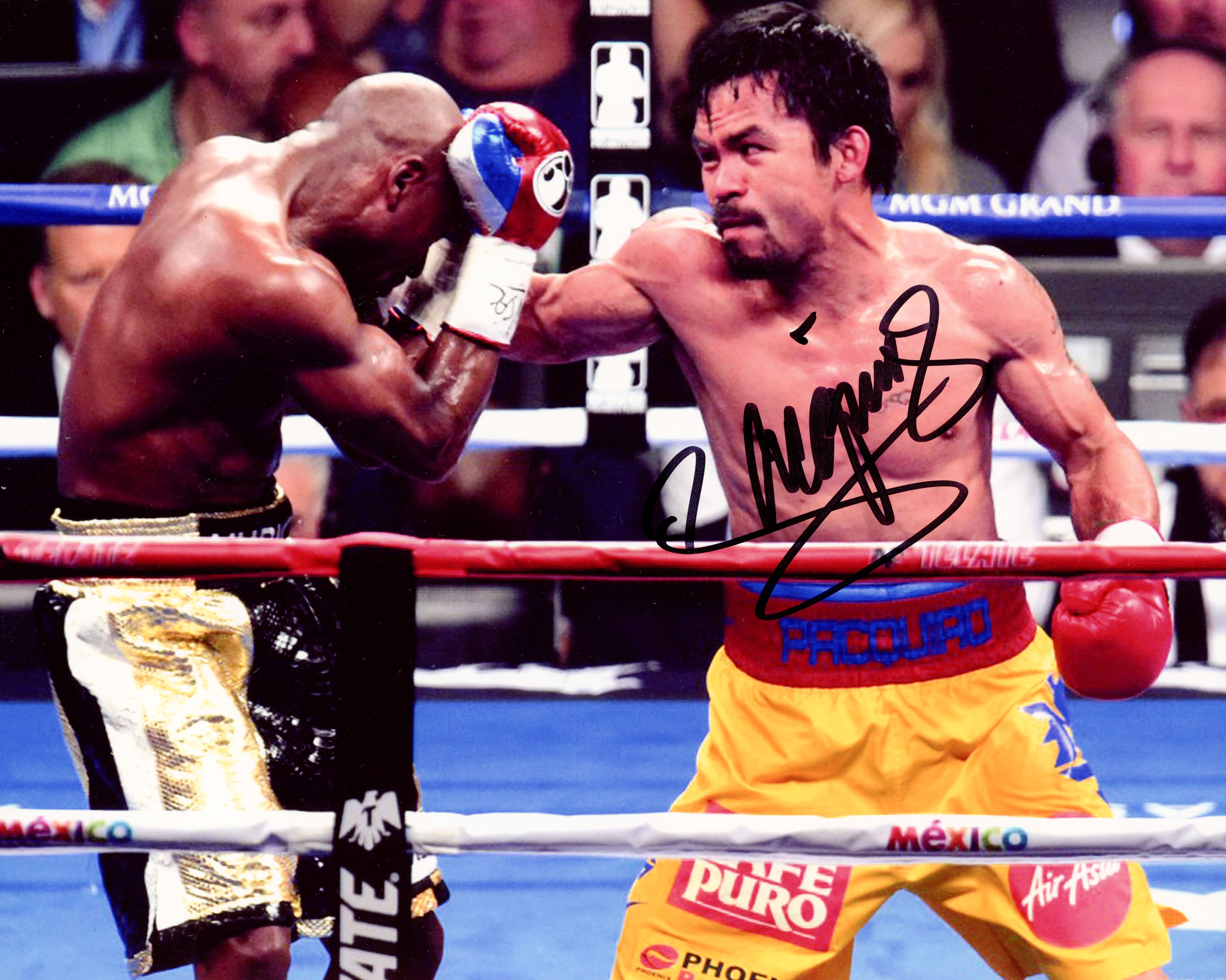 Photo measures approximately 8" x 10" in size and is hand-signed by Manny Pacquiao.