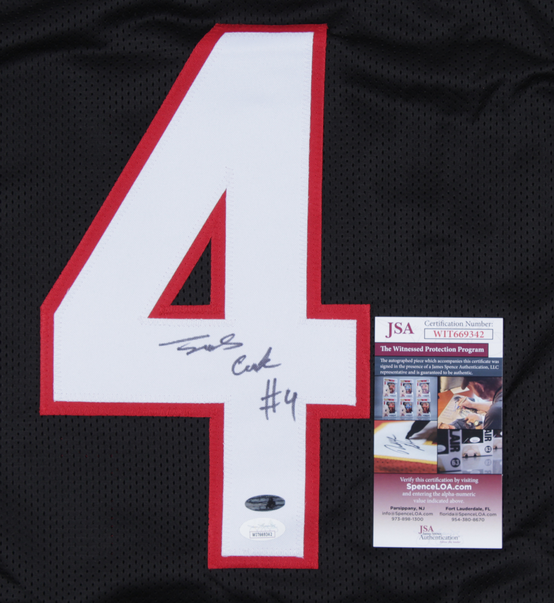 The lot / autograph(s) includes an official James Spence Authentication (JSA) hologram and matching COA as well as an official james Cook hologram for authenticity purposes. The signing of this item was witnessed by JSA.