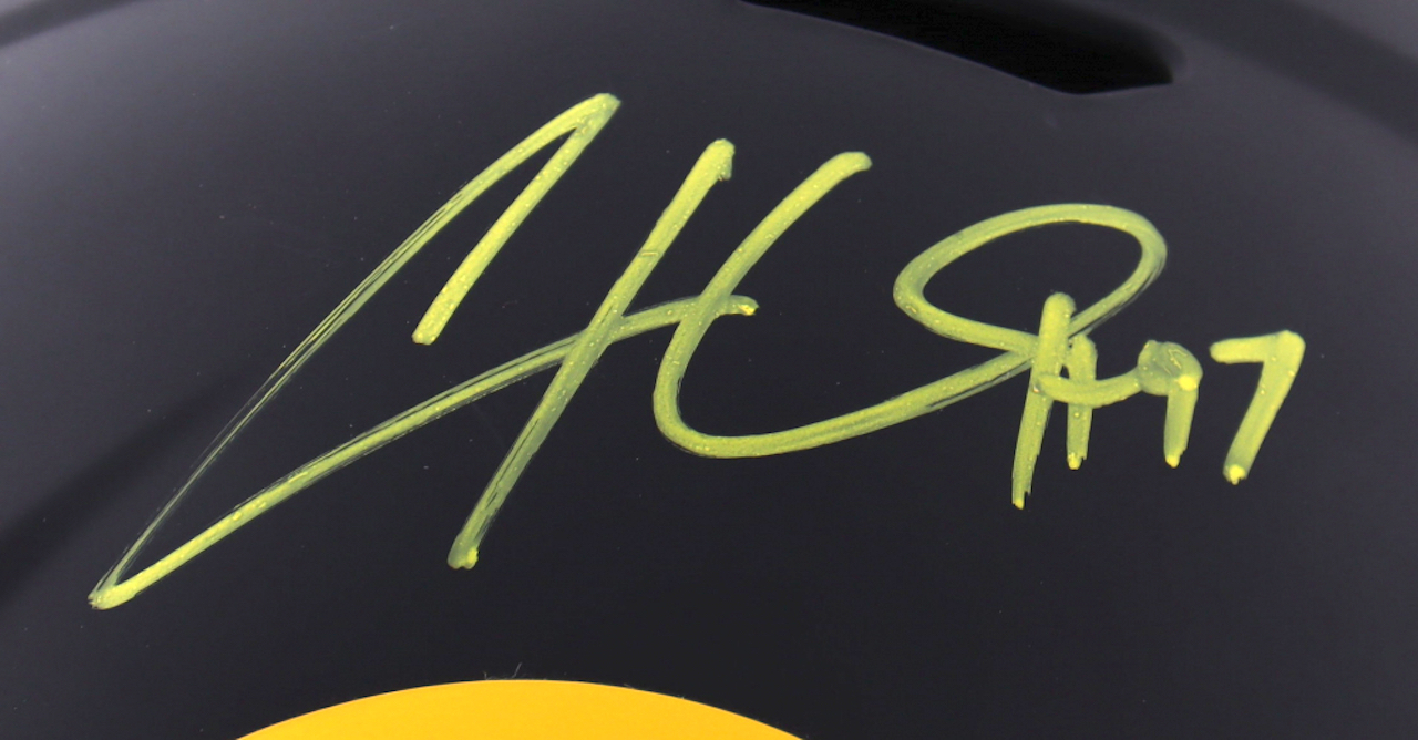 Riddell Pittsburgh Steelers full-size replica eclipse alternate speed helmet. Has been hand-signed by Cameron Heyward.