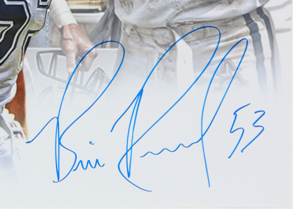 Photo measures 16" x 20" in size and has been hand-signed by Bill Romanowski. (Guard Lambert)
