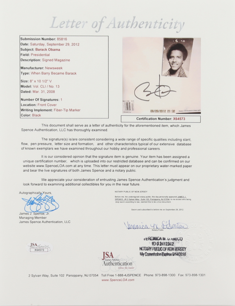 Barack Obama Signed 2008 News Week Magazine Cover (JSA LOA) (See Description)