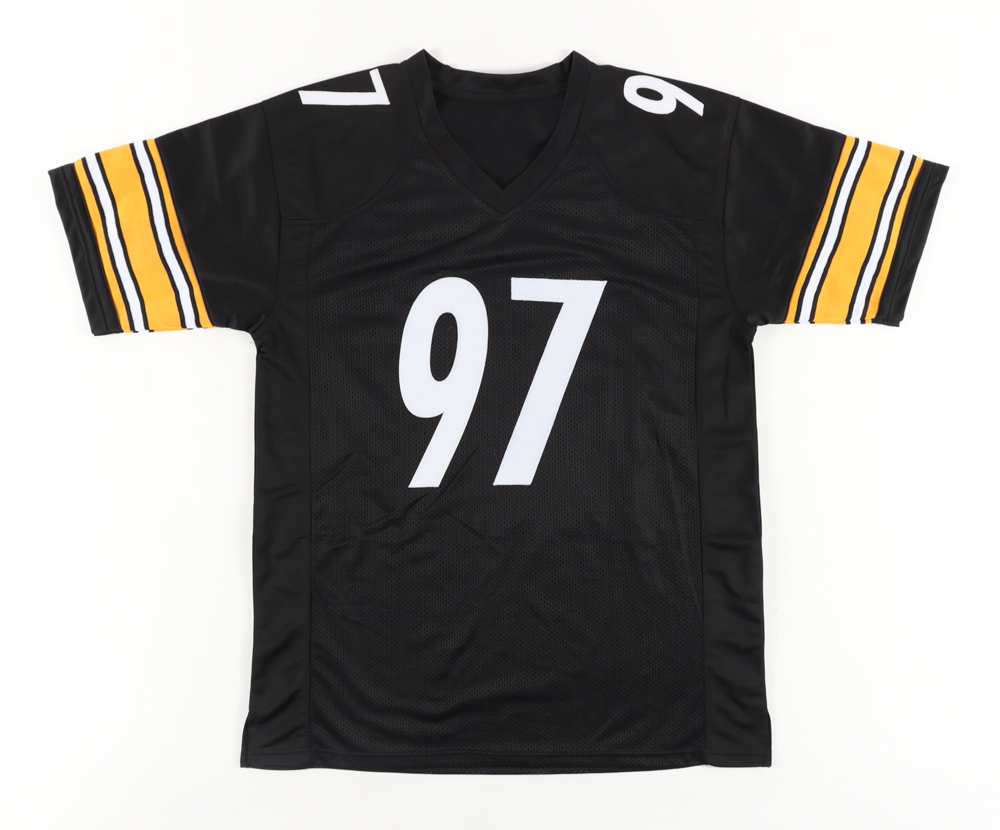 Custom on-field style jersey. Everything is sewn on, size XL. Has been hand-signed by Cameron Heyward.