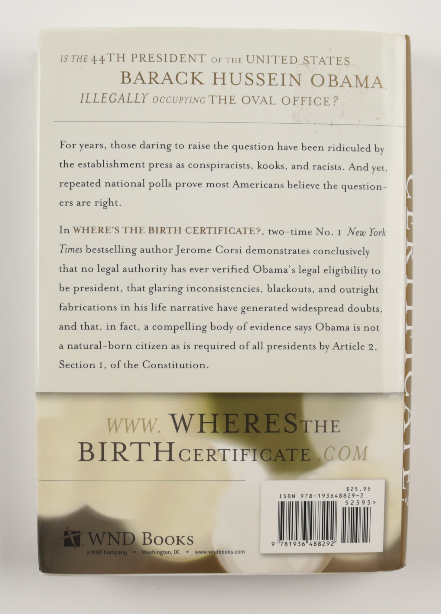 Jerome Corsi Signed "Where's The Birth Certificate?" Hardcover Book (JSA) (See Description)