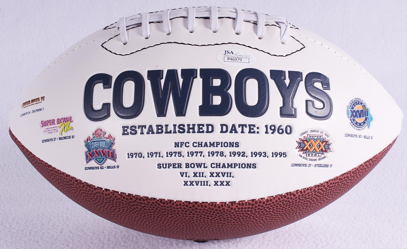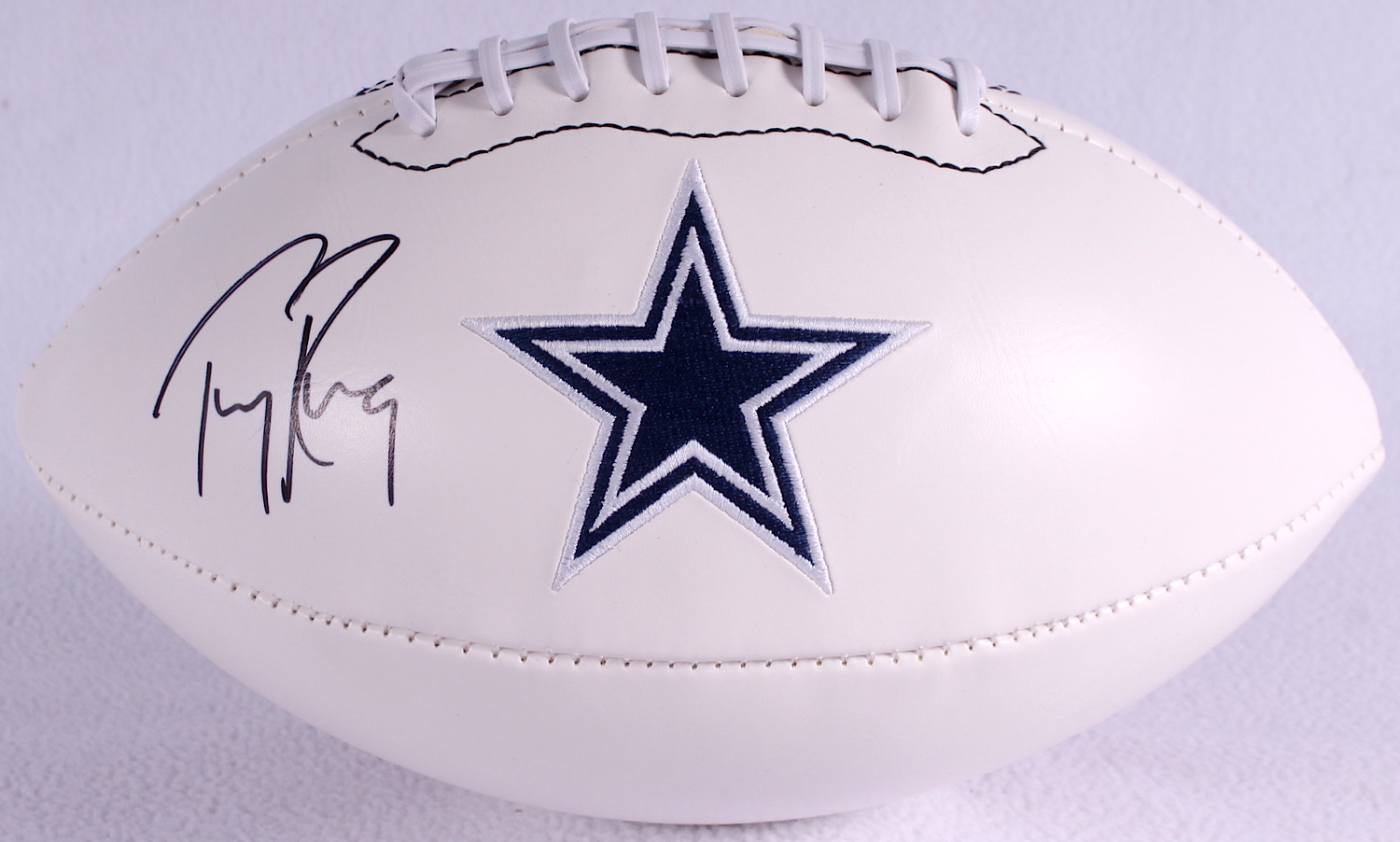 Full-size Dallas Cowboys logo football hand-signed in black felt-tip pen by Tony Romo (Cowboys).