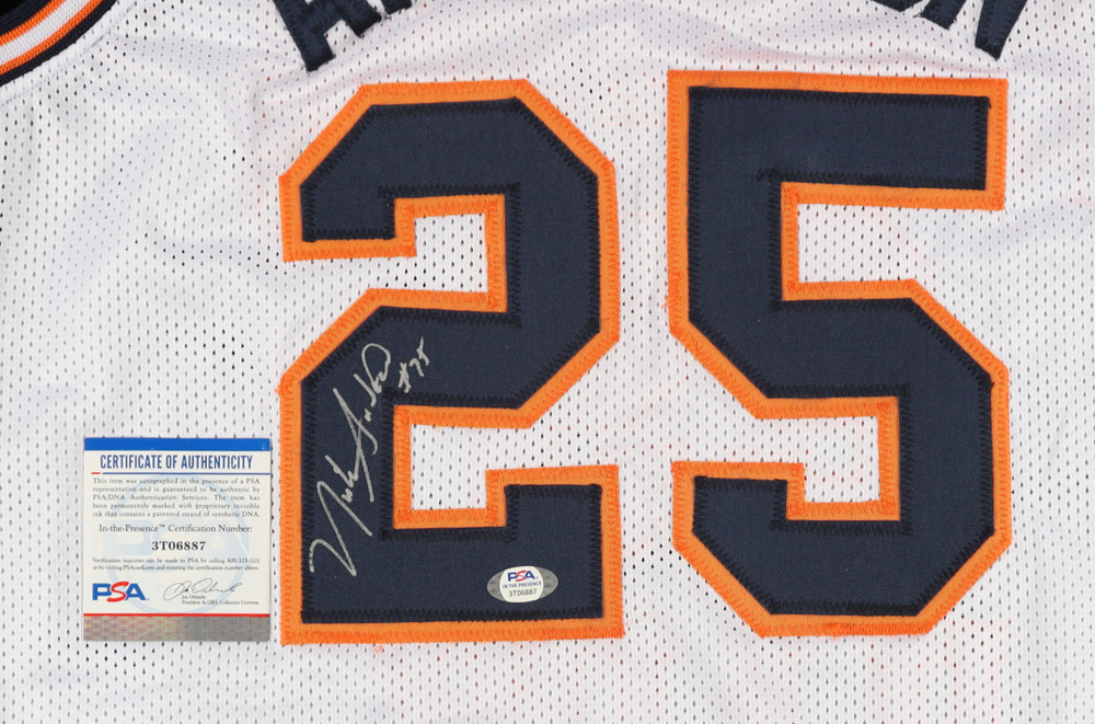 Custom on-court style jersey. Everything is sewn on, size XL. Hand-signed by Nick Anderson.