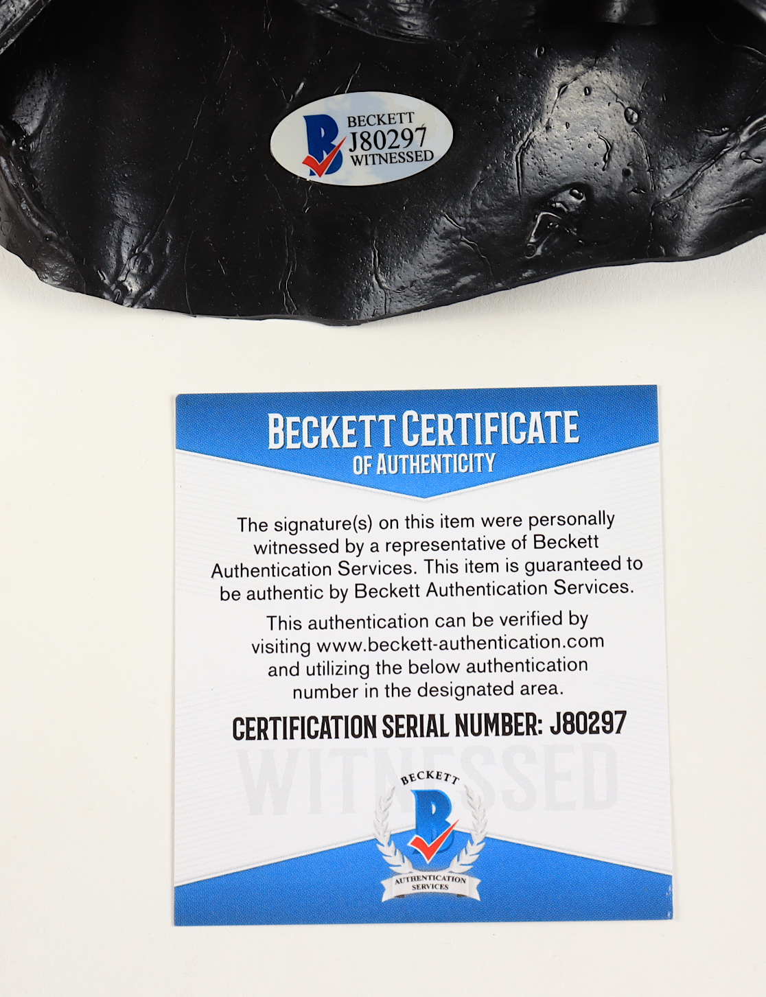 The lot / autograph(s) includes an official Beckett Authentication Services serially numbered hologram and matching COA for authenticity purposes. The signing of this item was witnessed by Beckett.