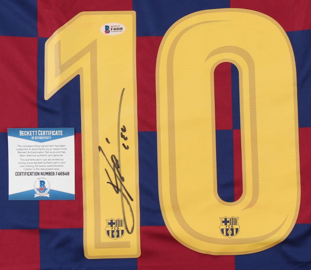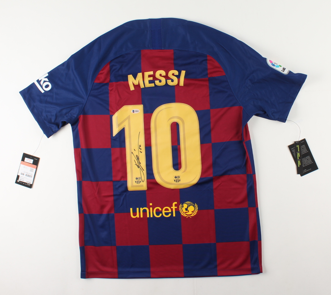Nike on-field style jersey. Everything is printed on, size L. Has been hand-signed by Lionel Messi. Please note, the numbers on the jersey have some stains. See photos for more details regarding the condition of the item.
