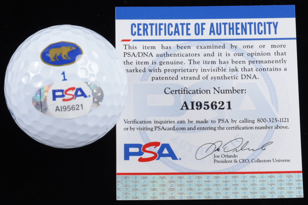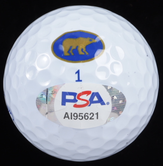 Golden Bear Logo Golf Ball has been hand-signed by Jack Nicklaus (HOF). Please note, the golf ball has slight signs of wear.