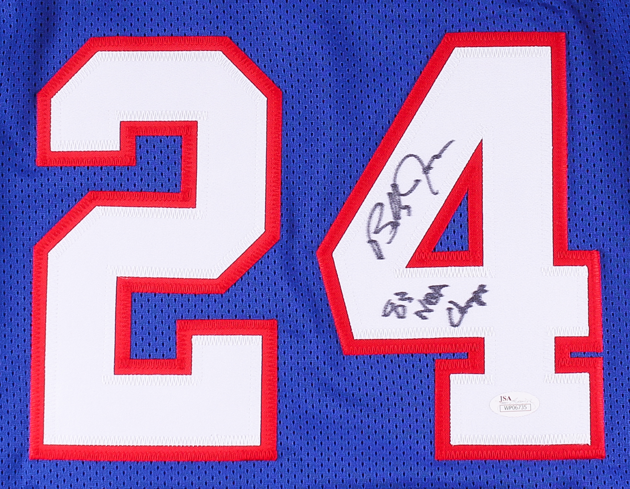 Custom on-court style jersey. Everything is sewn on, size XL. Hand-signed and inscribed in black felt tip pen by Bobby Jones.