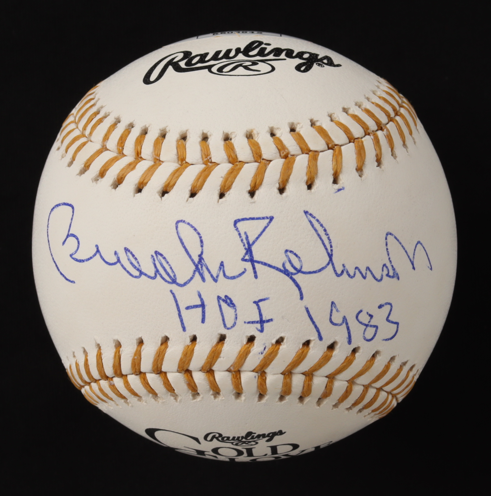 Rawlings Official Golden Glove Award Baseball has been hand-signed and inscribed by Brooks Robinson (Baltimore Orioles, HOF).