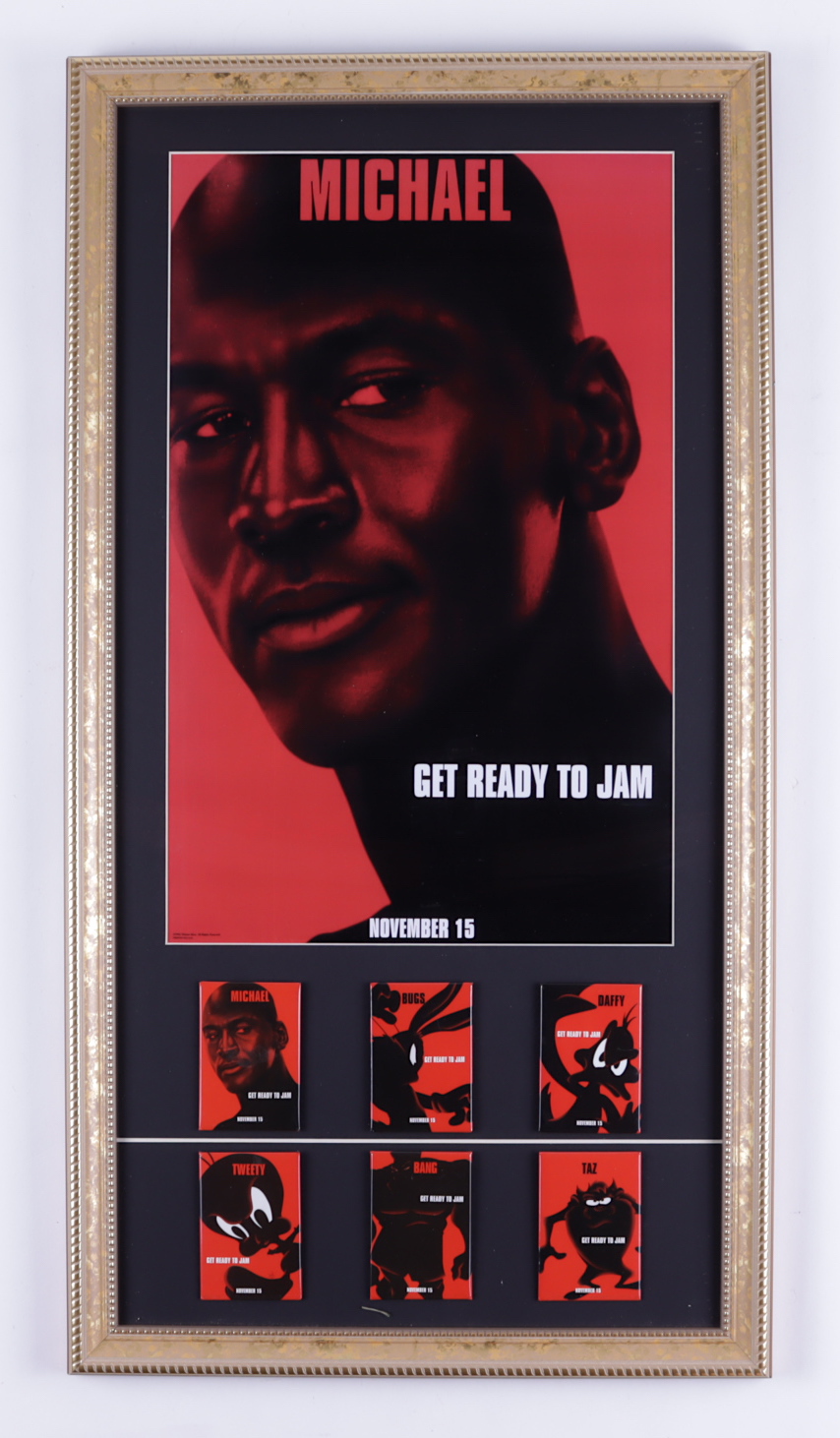 Michael Jordan "Space Jam" 15x28 Custom Framed Movie Poster with Complete Set of (6) Opening Day Movie Pins (See Description)