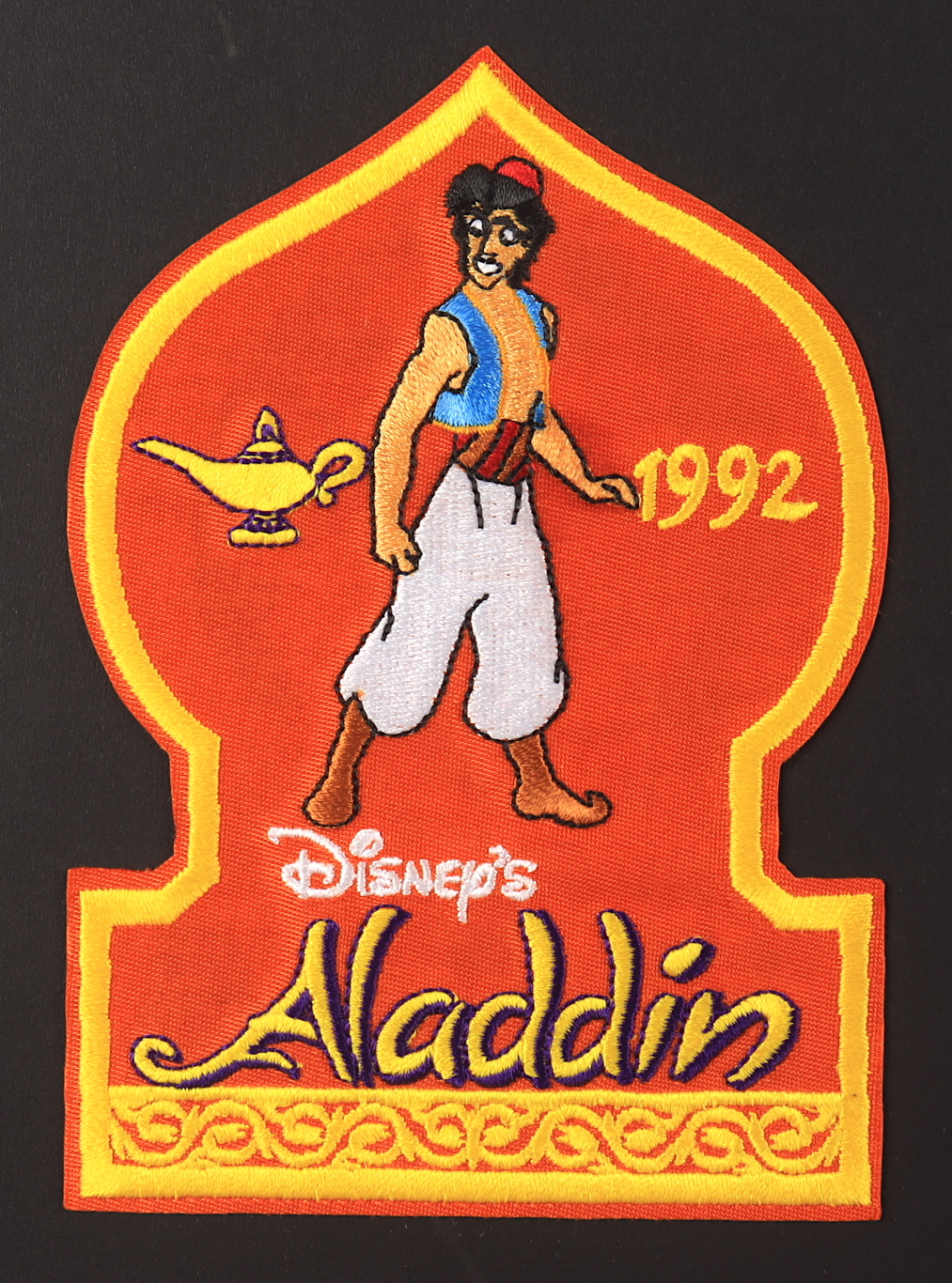 Thomas Kinkade Walt Disney's "Aladdin" 15x22 Custom Framed Print Display with 1992 "Aladdin" Patch