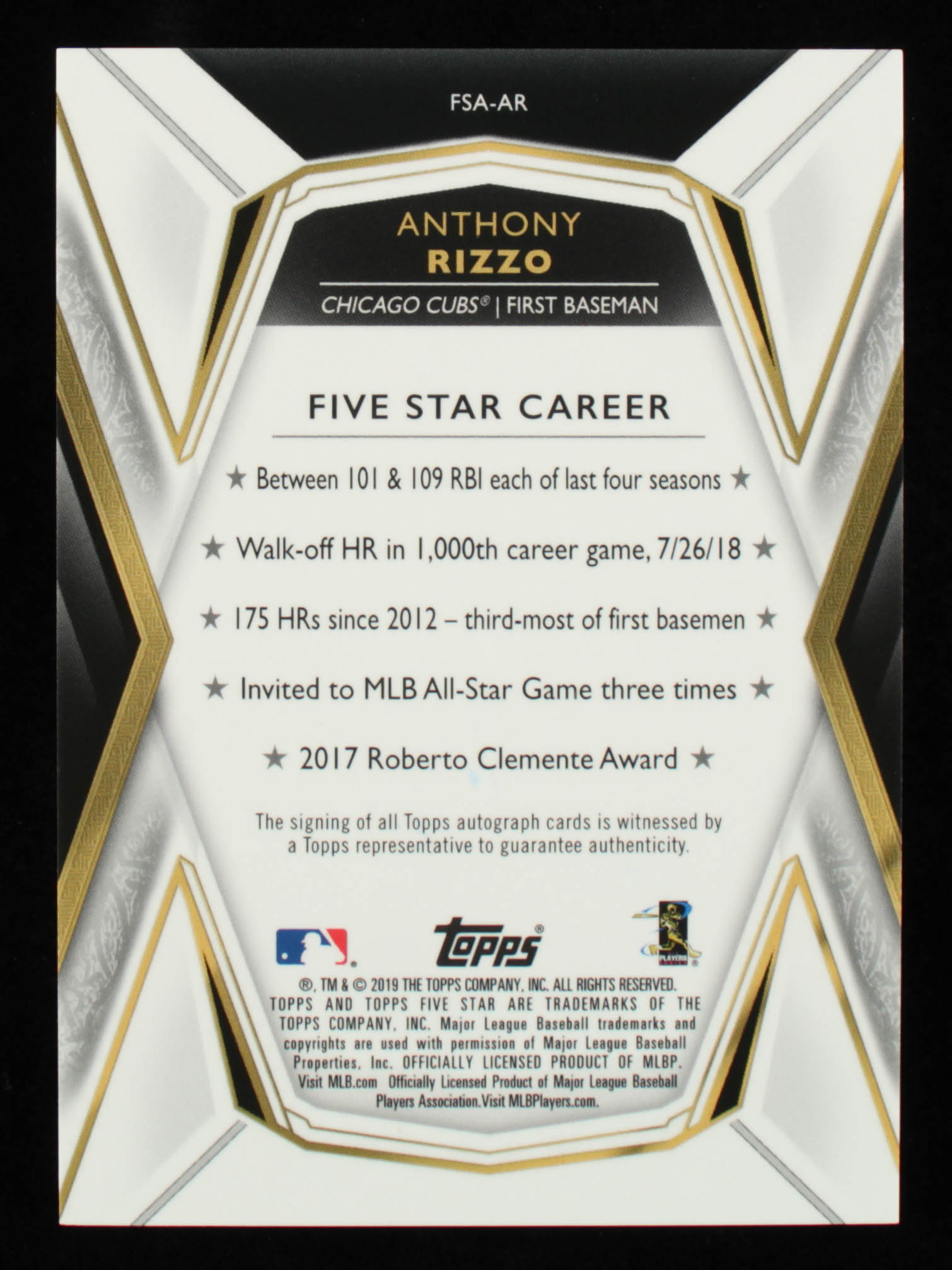 Anthony Rizzo 2019 Topps Five Star Autographs Green #FSAAR #10/15