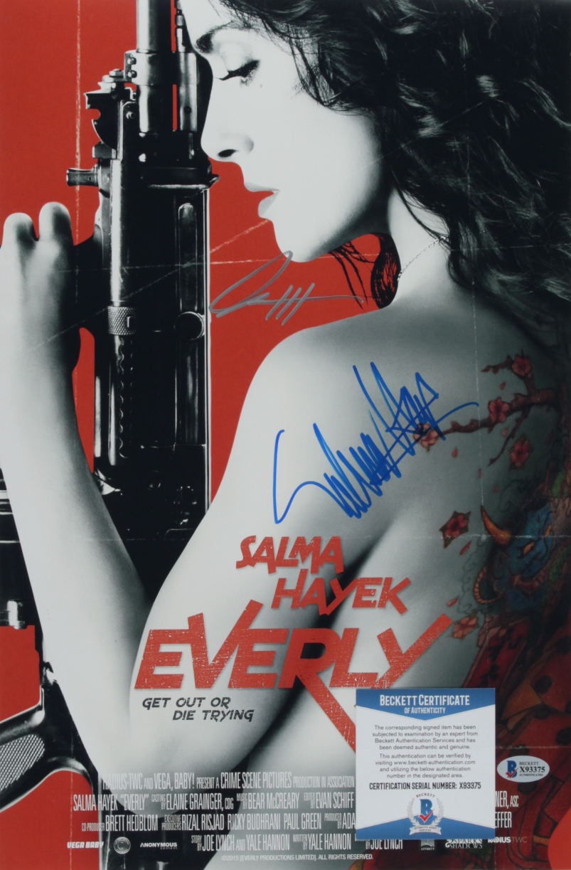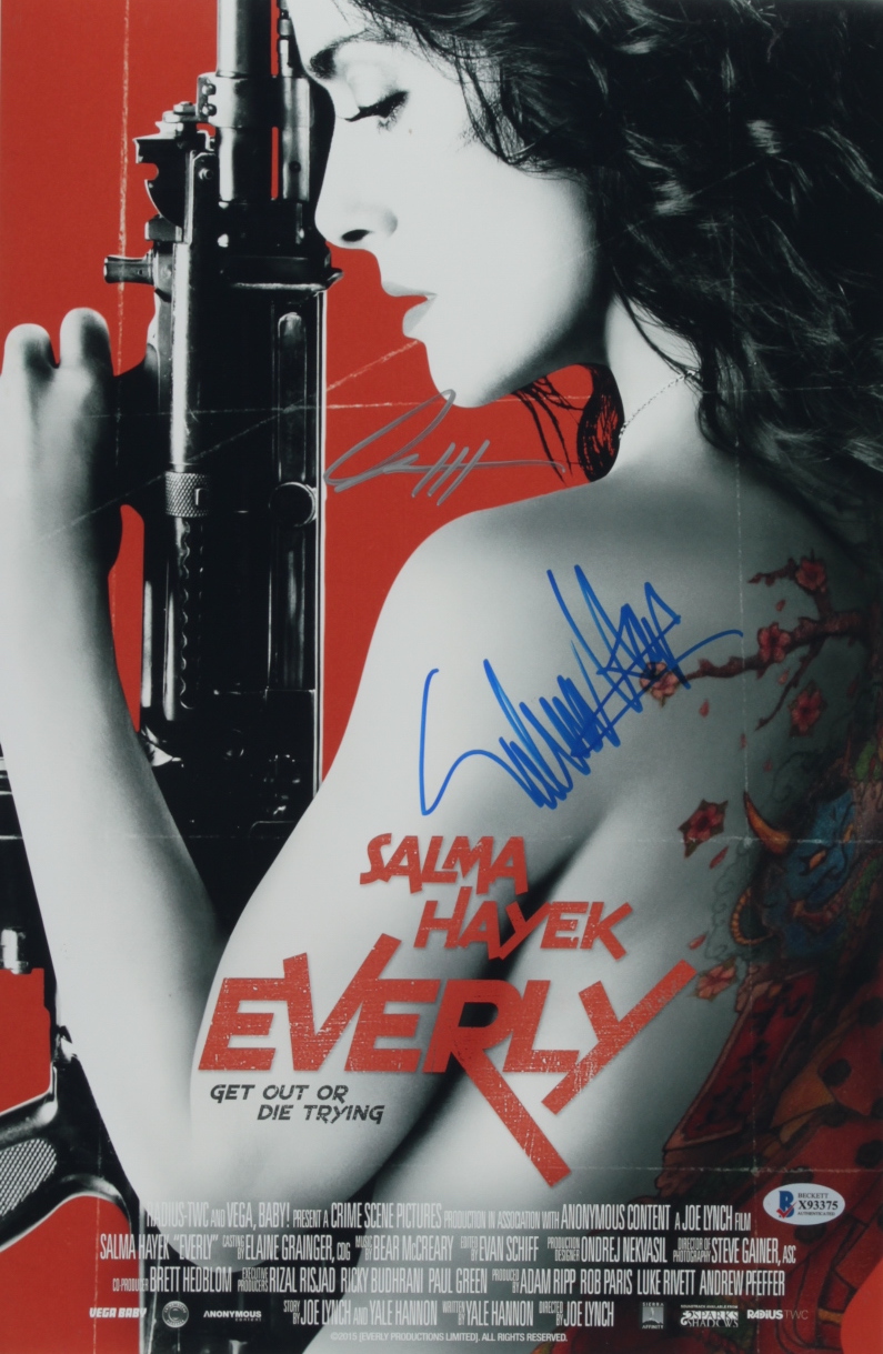 Salma Hayek & Joe Lynch Signed "Everly" 11x17 Movie Poster (Beckett COA)