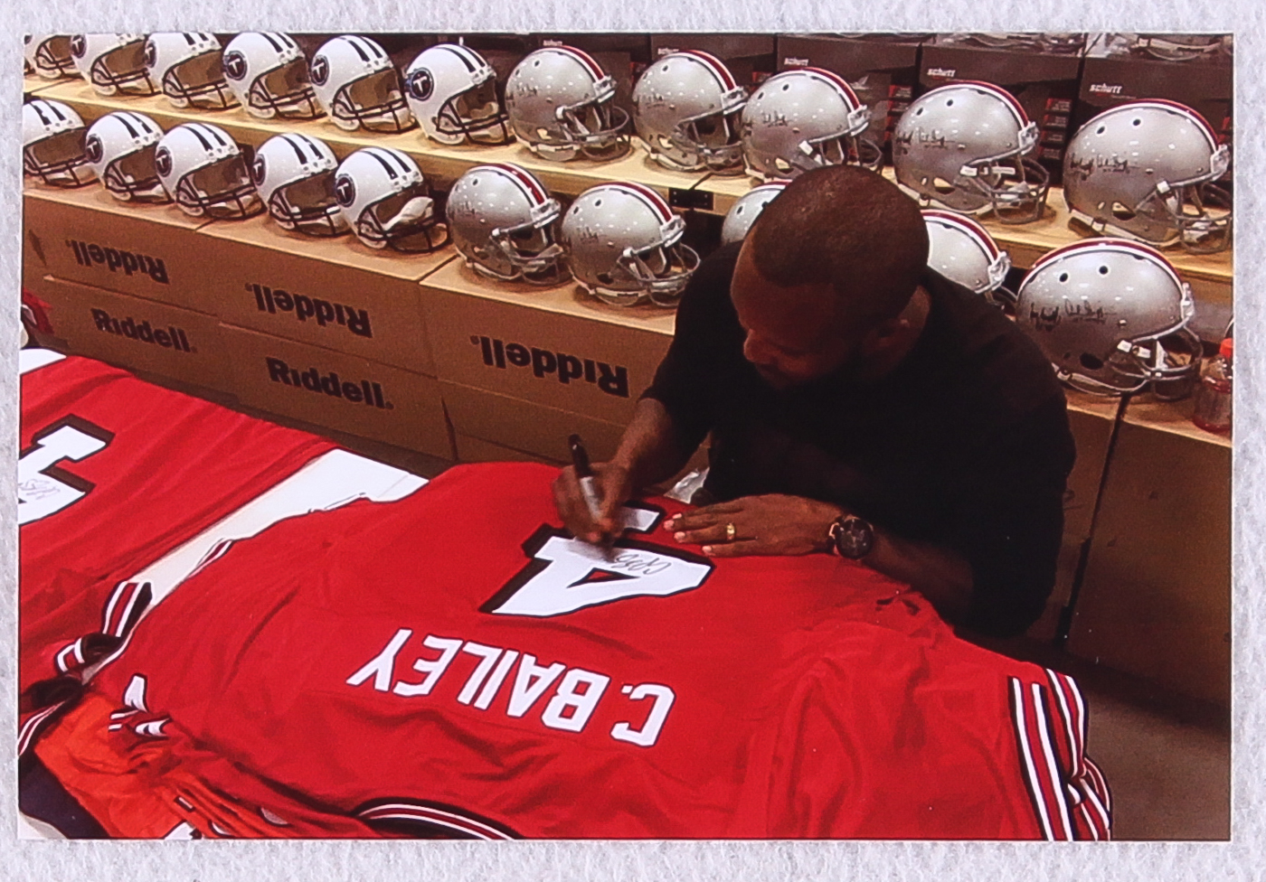 Custom on-field style jersey. Everything sewn on, size XL. Hand-signed in black felt tip pen by Champ Bailey (Redskins, Broncos).